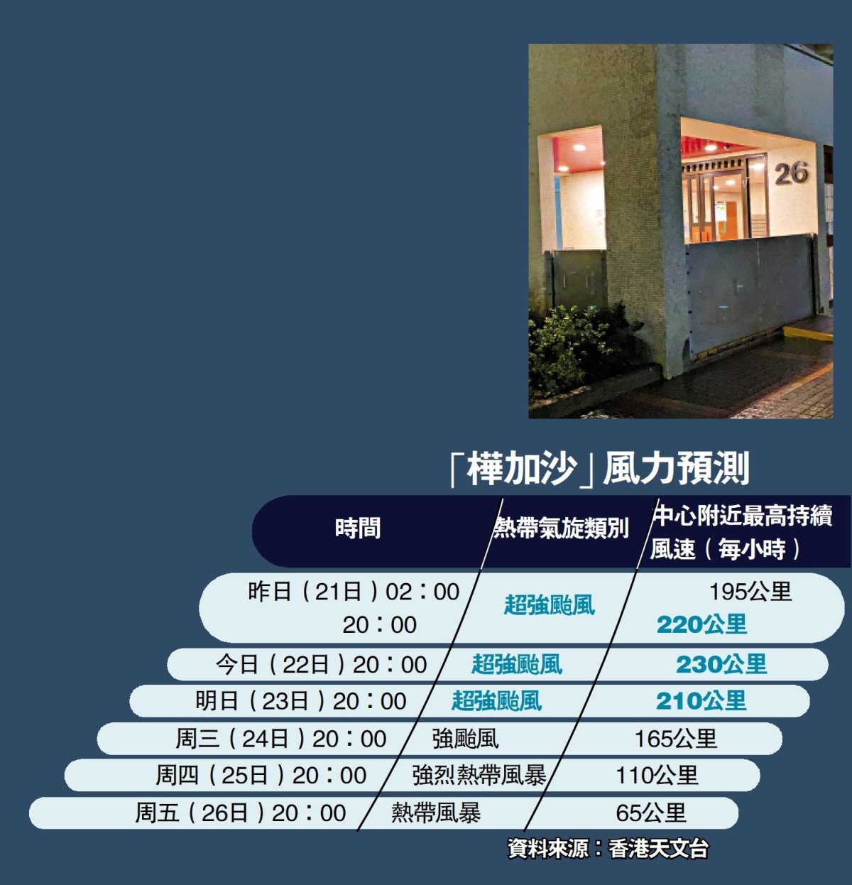 【點新聞報道】「樺加沙」昨日(21日)增強為超強颱風,直撲香港。預料周三最接近香港時,其中心附近風力將升級至時速220公里,相當於12級颶風,屆時沿岸水位可能與2017年「天鴿」、2018年「山竹」相若。氣象專家形容,「樺加沙」威力巨大,對本港的威脅不容忽視。