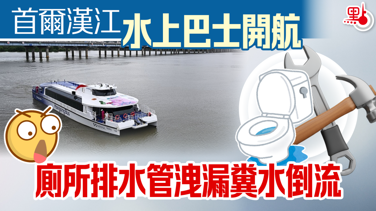 【點新聞報道】韓國首爾市政府為增加市民通勤及大眾運輸選項,9月18日正式啟動「漢江水上巴士」,首航即吸引超過4,300人乘搭,滿座率高達八成。然而首日營運卻出現故障,有乘客發現船上廁所排水管洩漏。