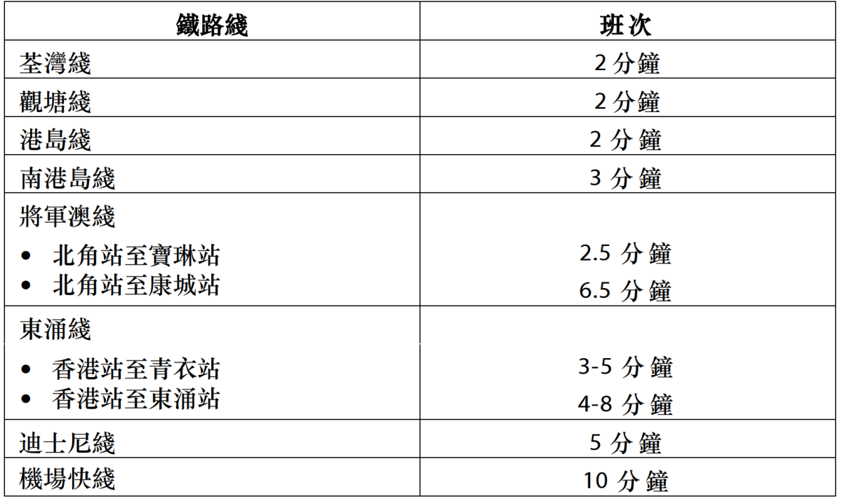 港鐵服務將陸續加強至以下班次: