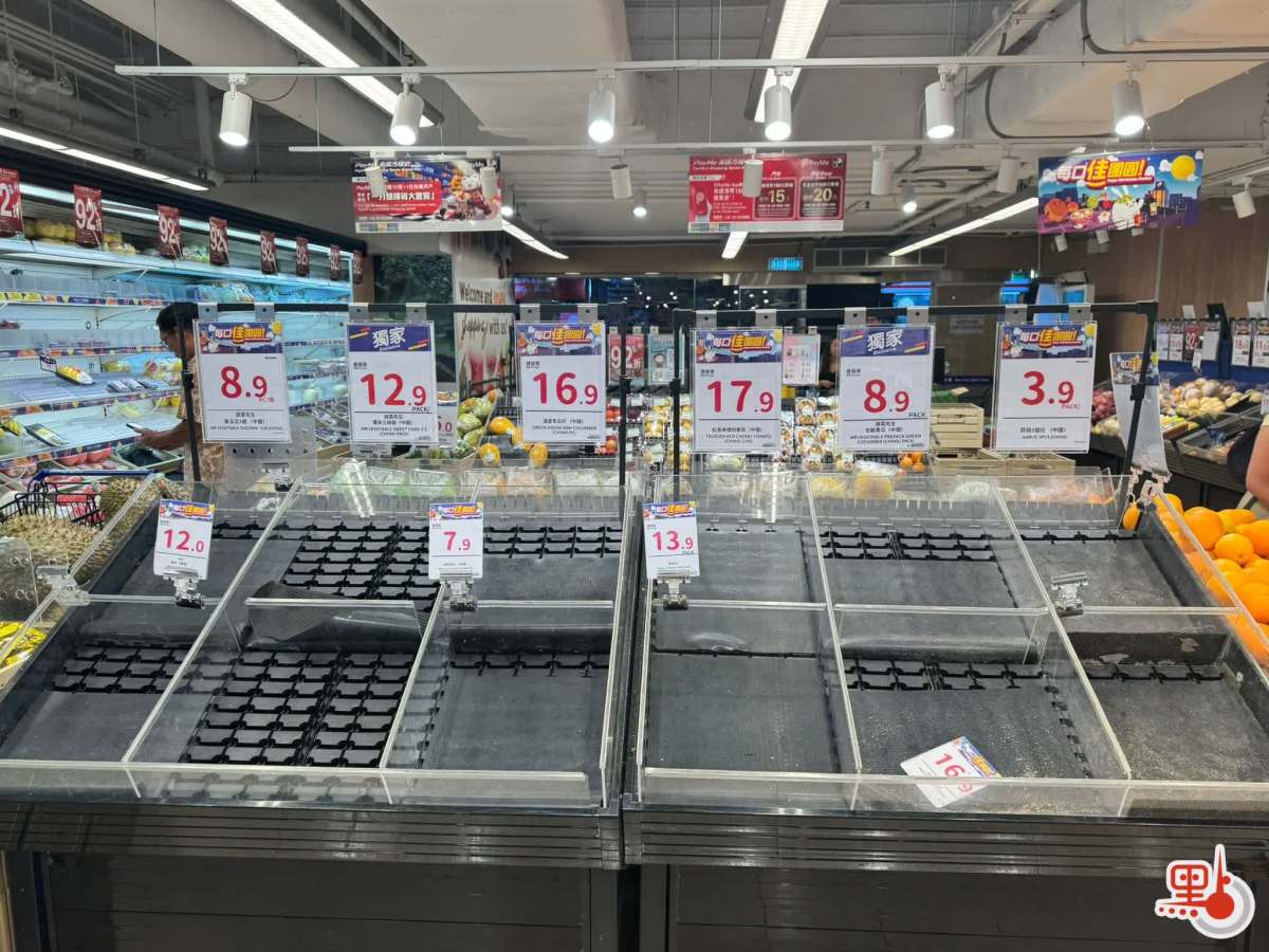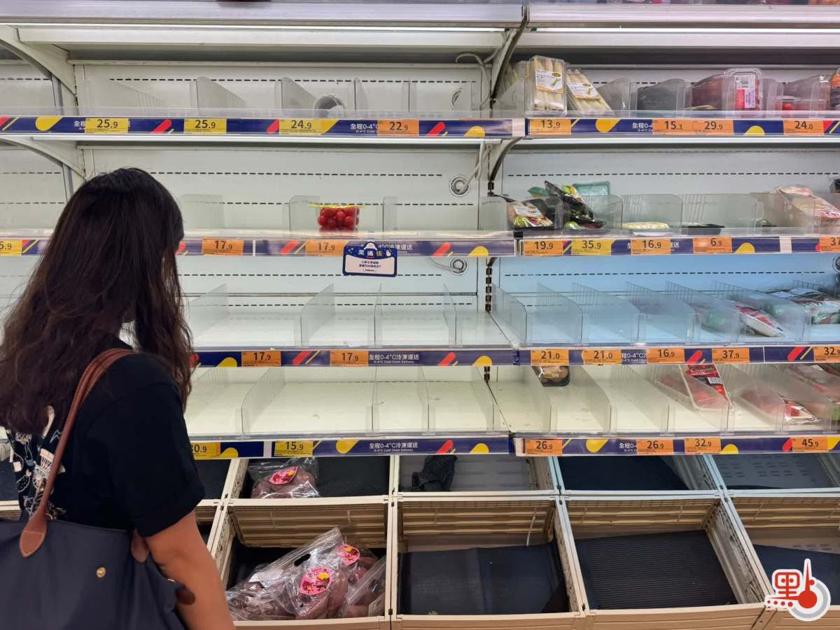 【點新聞報道】受超強颱風「樺加沙」的廣闊環流影響,天文台預料本港今日(23日)稍後天氣開始急速轉壞,並將於今日下午2時20分改發八號烈風或暴風信號。本港嚴陣以待,許多市民昨日(22日)已開始「搶購潮」,在附近街市與超市購入大量物資,包括青菜、飲用水、麵包、即食麵等,為即將到來的「樺加沙」作準備。點新聞記者發現,在白天「搶購潮」下,昨日下午多數菜舖與肉檔已經斷貨,亦有店舖趁颱風天將食材加價至一倍之多,許多市民只能無奈接受溢價。