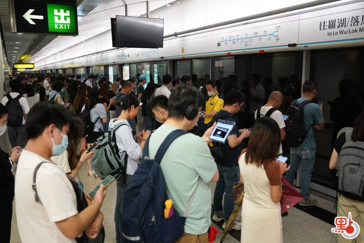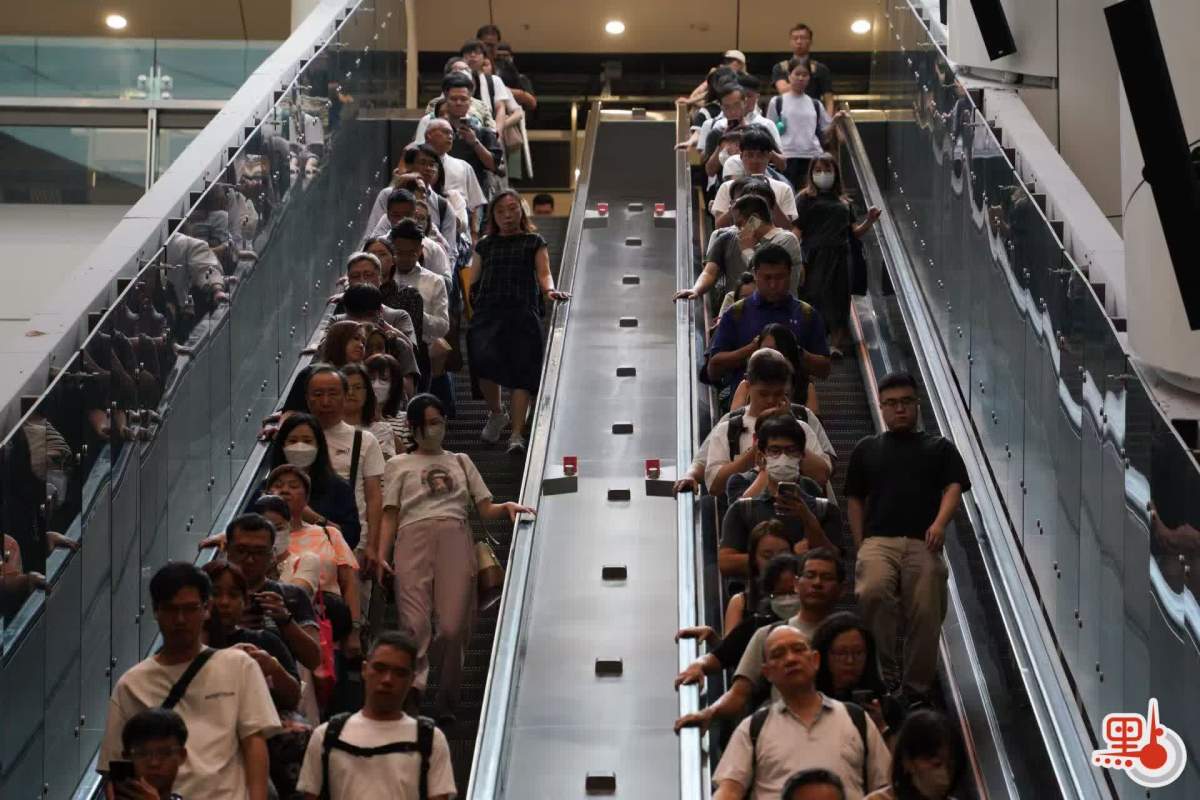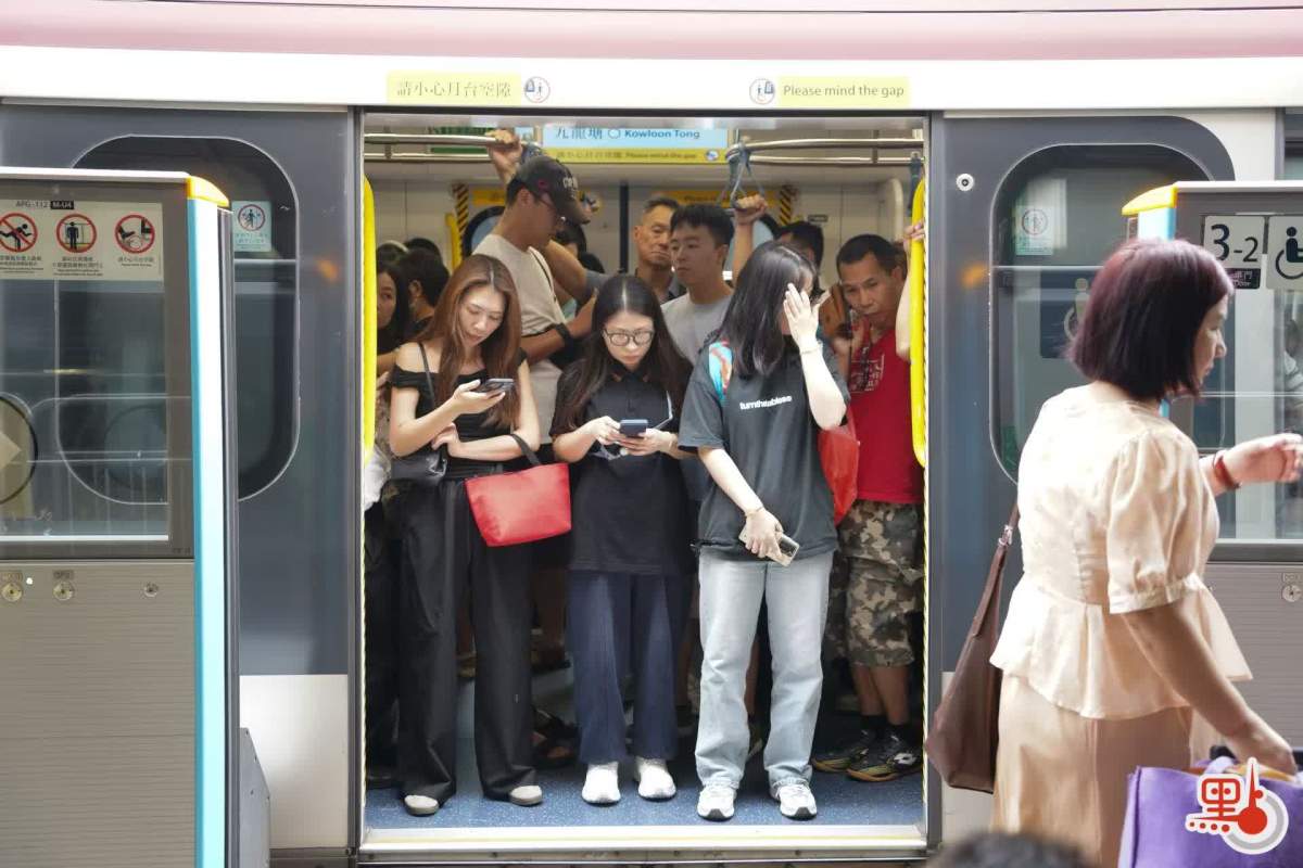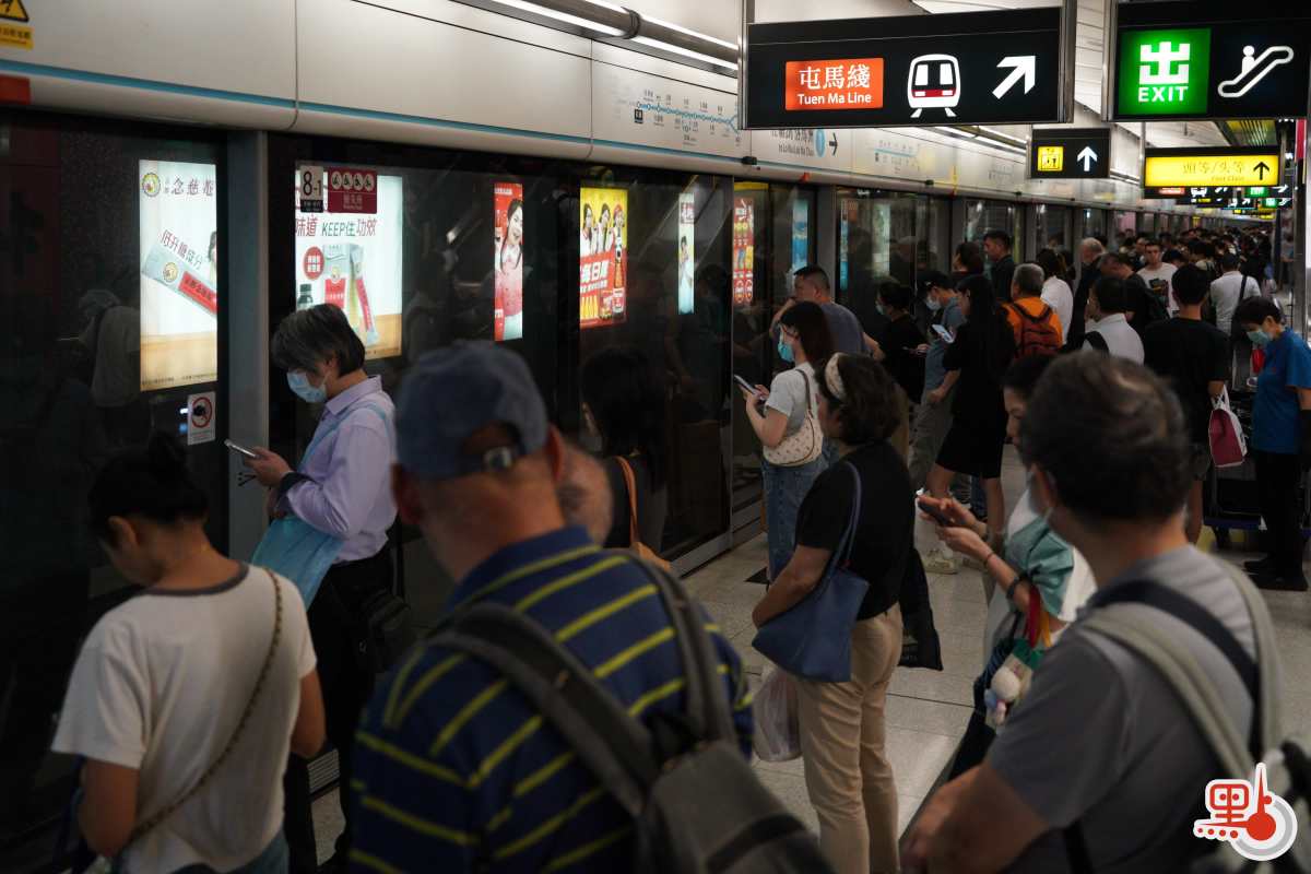 點新聞記者於港鐵金鐘站、九龍塘站與紅磡站內見到,許多打工人趕在八號風球懸掛之前趕回家,港鐵站內人流眾多,扶梯與月台大排長龍。