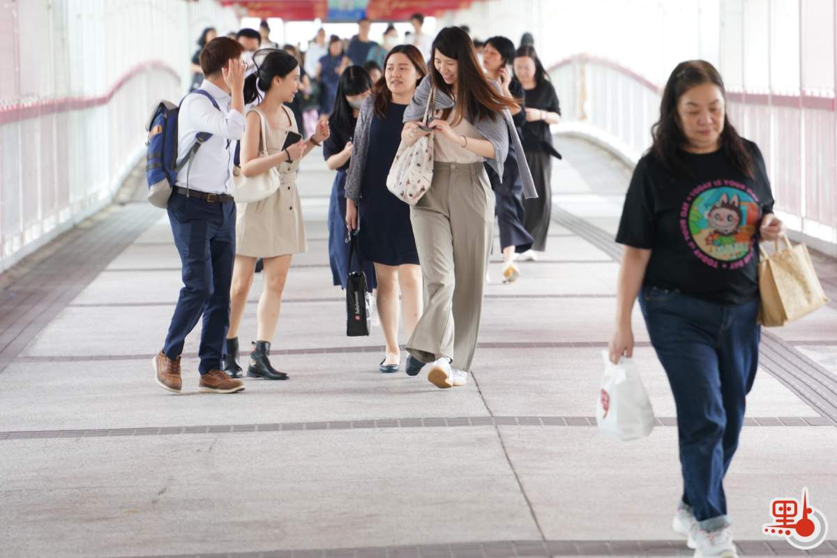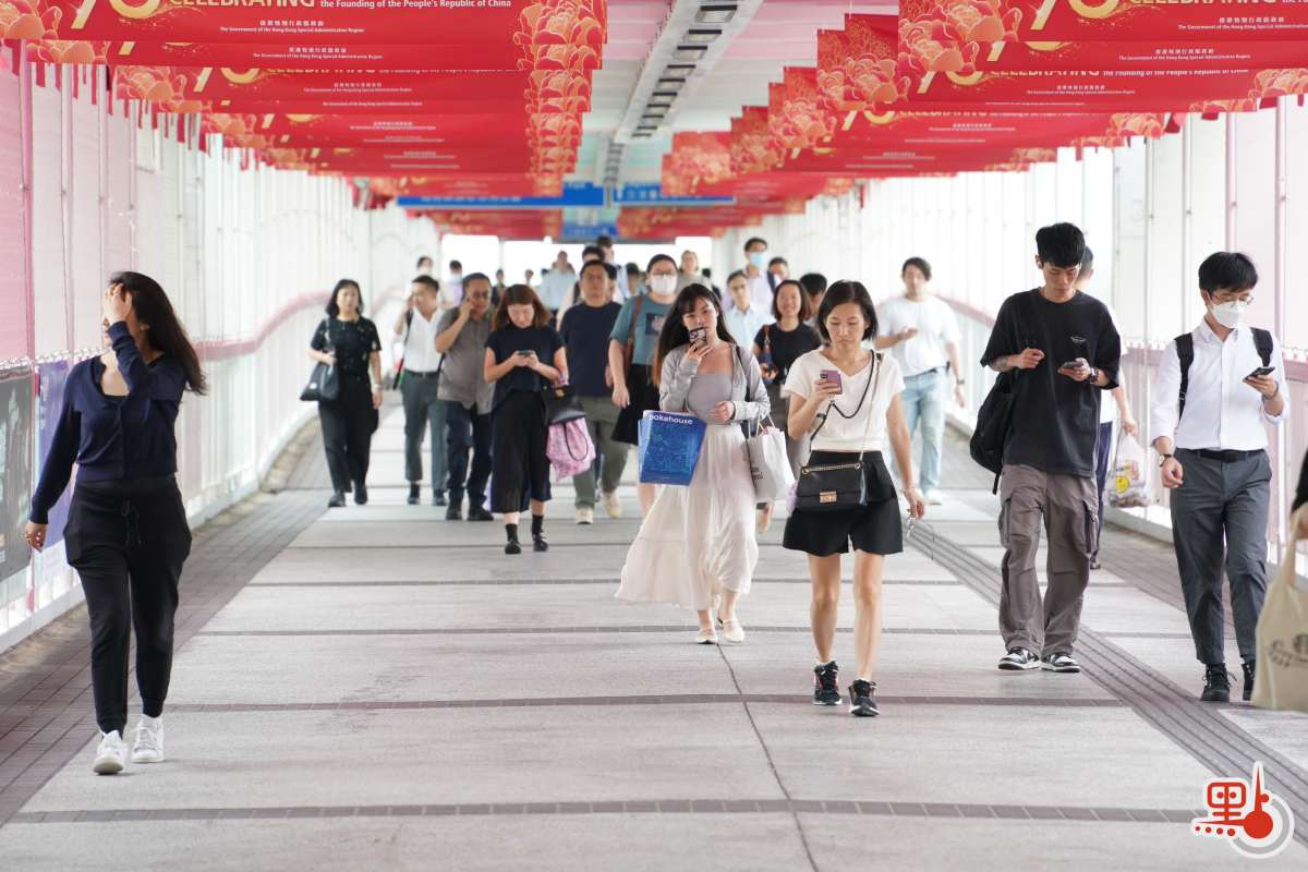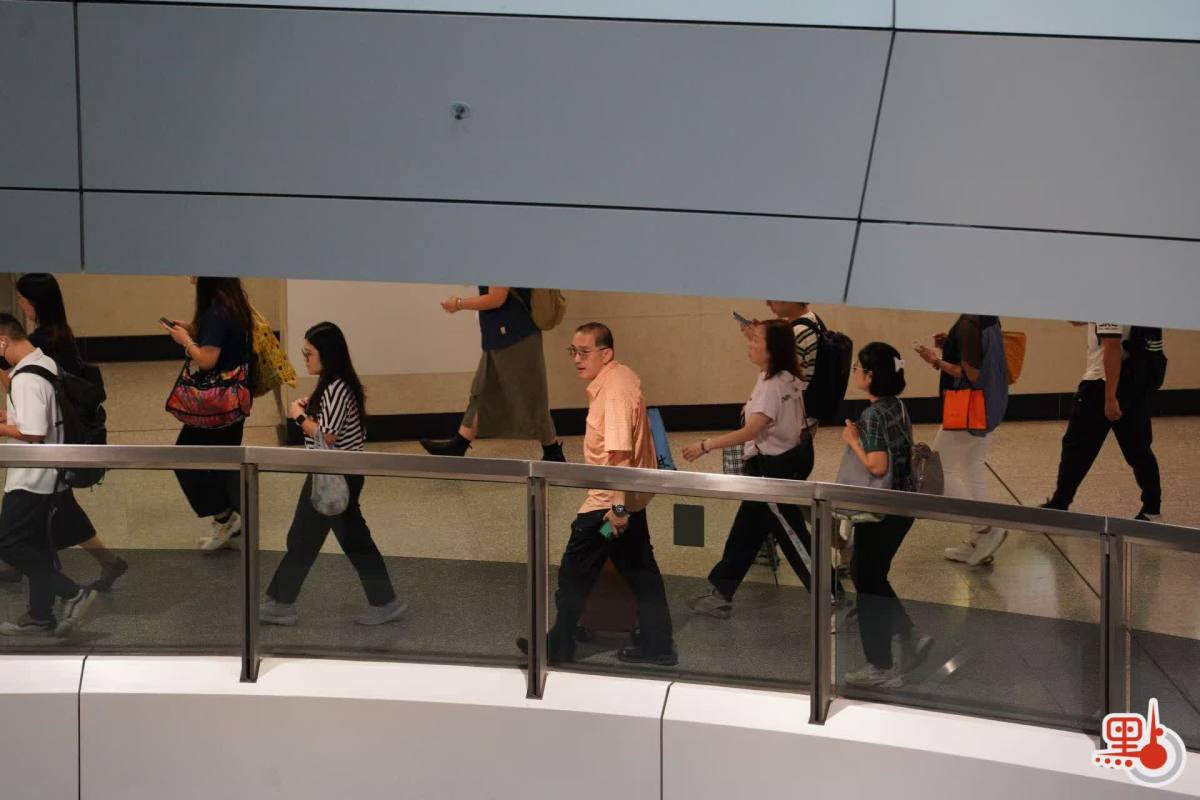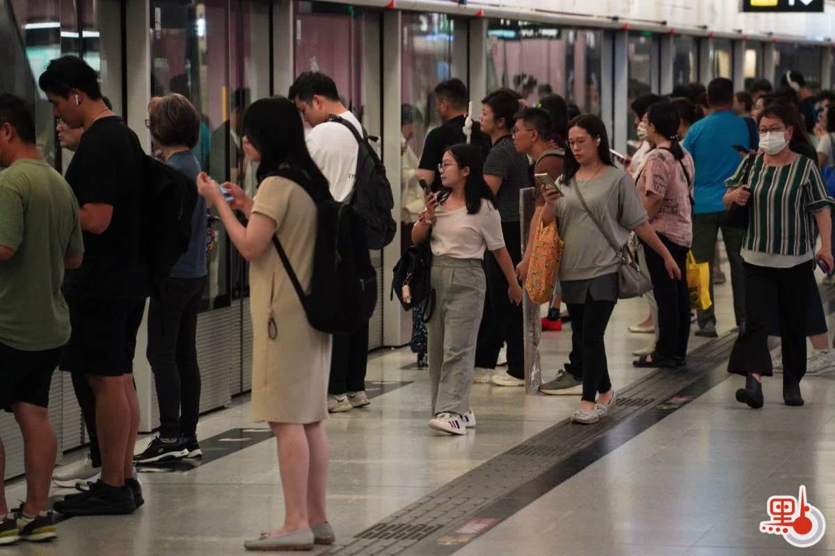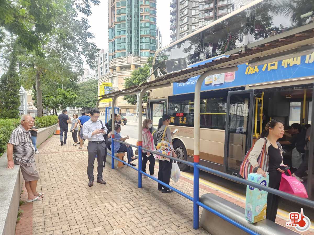 點新聞記者於港鐵金鐘站、九龍塘站與紅磡站內見到,許多打工人趕在八號風球懸掛之前趕回家,港鐵站內人流眾多,扶梯與月台大排長龍。