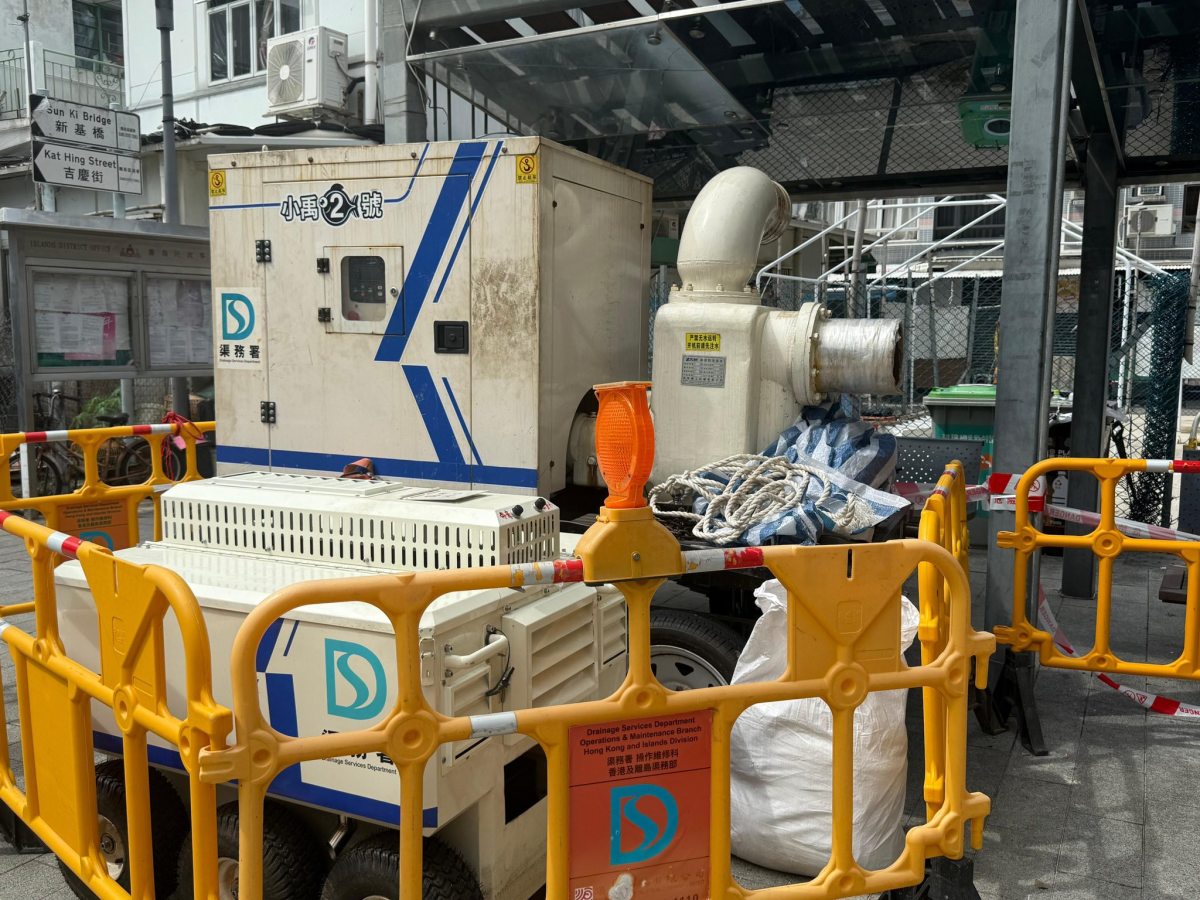 目前,渠務署已派遣90隊緊急應變隊伍處理市民有關水浸求助個案,重複巡查及清理全港約240個因淤塞而容易水浸地點。截至下午4時00分,署方並未有確認水浸個案。而渠務署最新購入的4部「龍吸水」,昨晚(22日)已全部運抵本港。現時為數6部「龍吸水」及4部「小禹」系列強力排水機械人已到達多個水浸風險高的地區戒備,其餘4部「龍吸水」現正在渠務署設施戒備,當收到較嚴重水浸報告,會即時前往水浸現場清理。