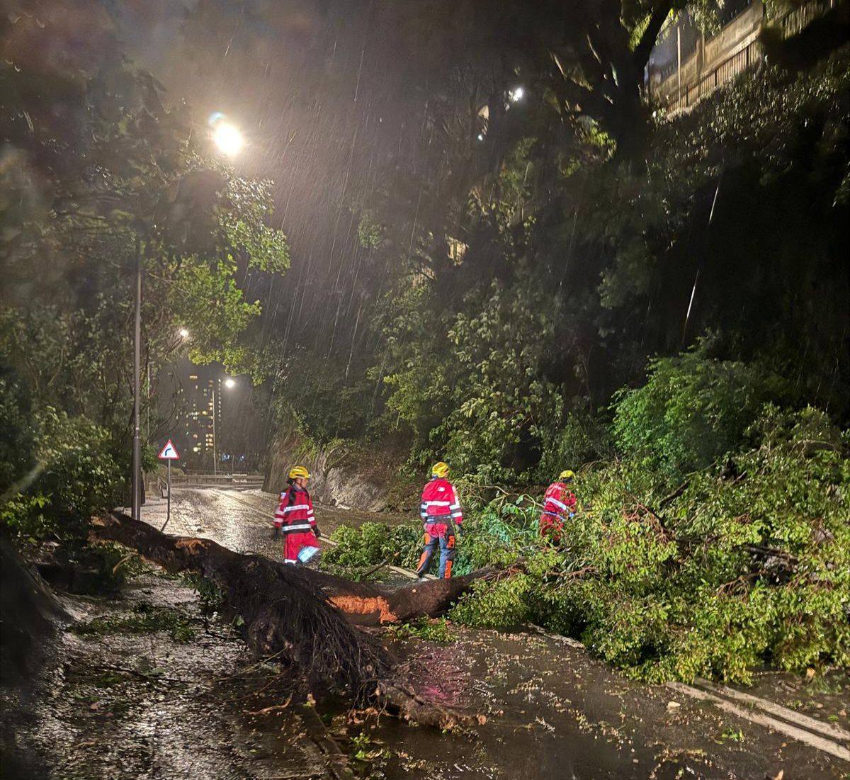 此外,截至今早8時正,消防處接獲多個求助個案,當中包括超過130宗緊急塌樹事故以及超過90宗升降機事故。正在全力處理中,務求保障市民的安全。同時亦再次呼籲市民留在室內安全地方、密切留意最新天氣消息、若遇到緊急情況,請立即致電999求助。