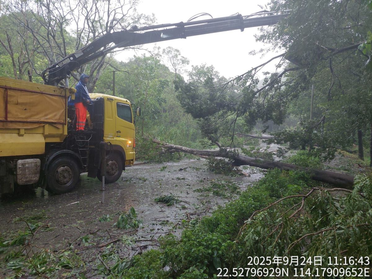 今日中午,在超強颱風樺加沙吹襲期間,新界西及新界東北堆填區附近的道路均有大樹倒塌阻路。環保署的兩個堆填區承辦商隨即出動,在屯門龍門路及打鼓嶺禾徑山路處理塌樹,重開通往堆填區及附近民居的道路,便利附近居民及緊急服務。