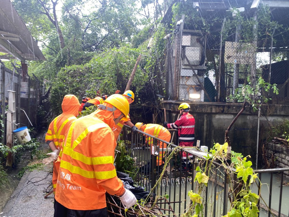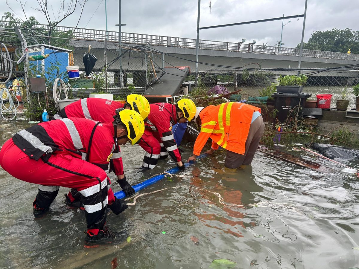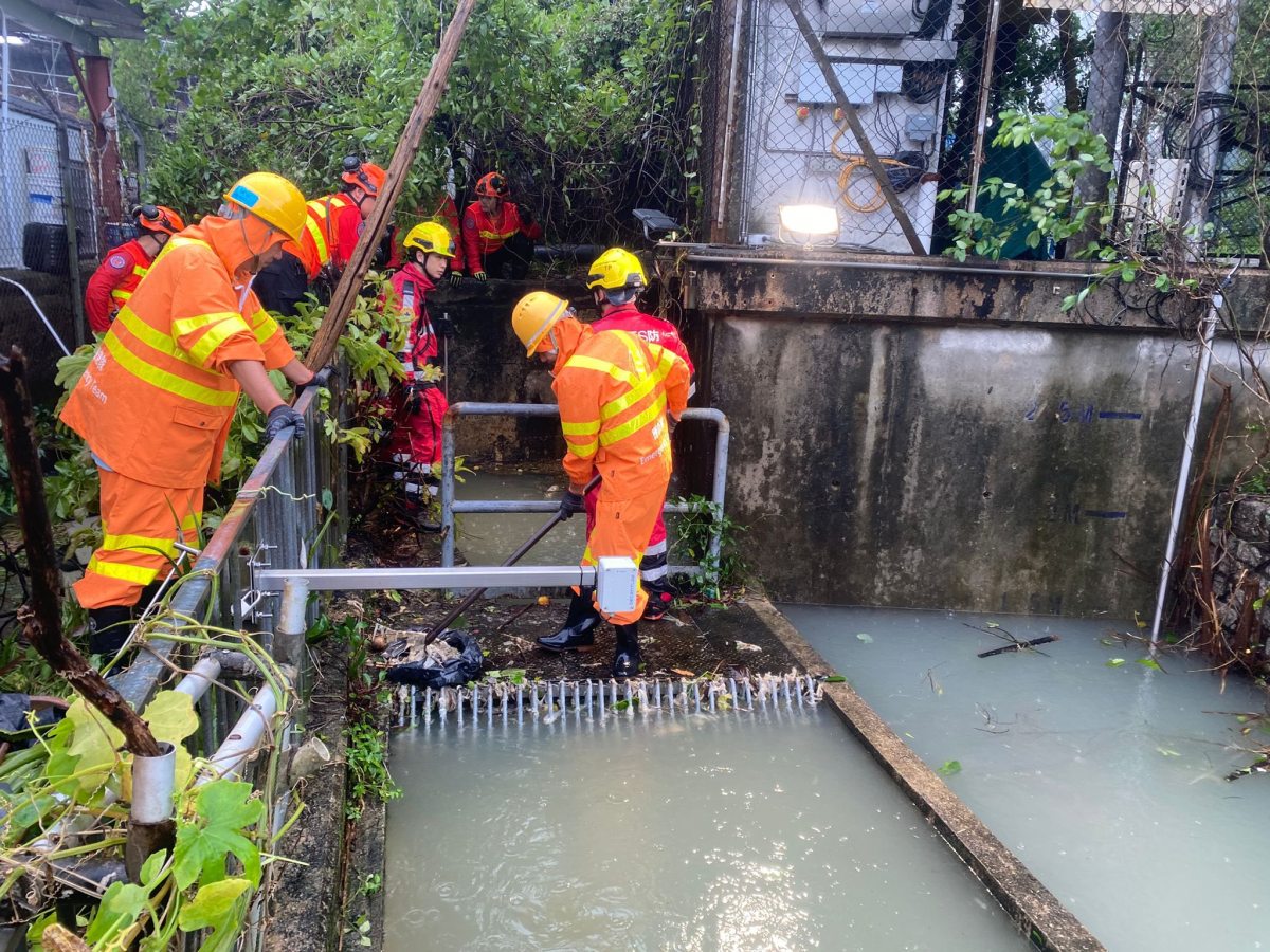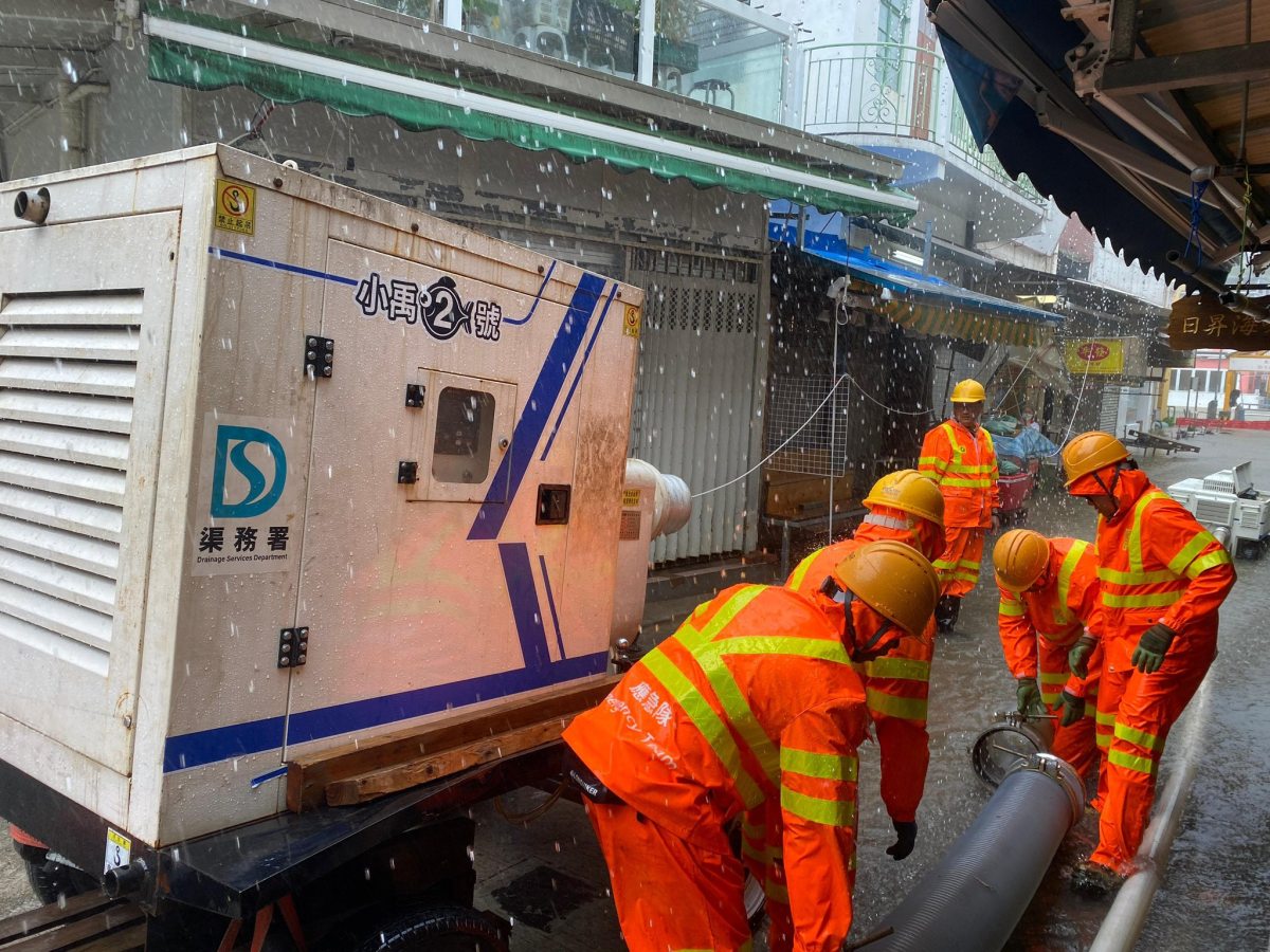 渠務署已派遣200隊緊急應變隊伍處理水浸個案,並根據現場環境調配強力排水機械人「龍吸水」及「小禹」系列前往協助。