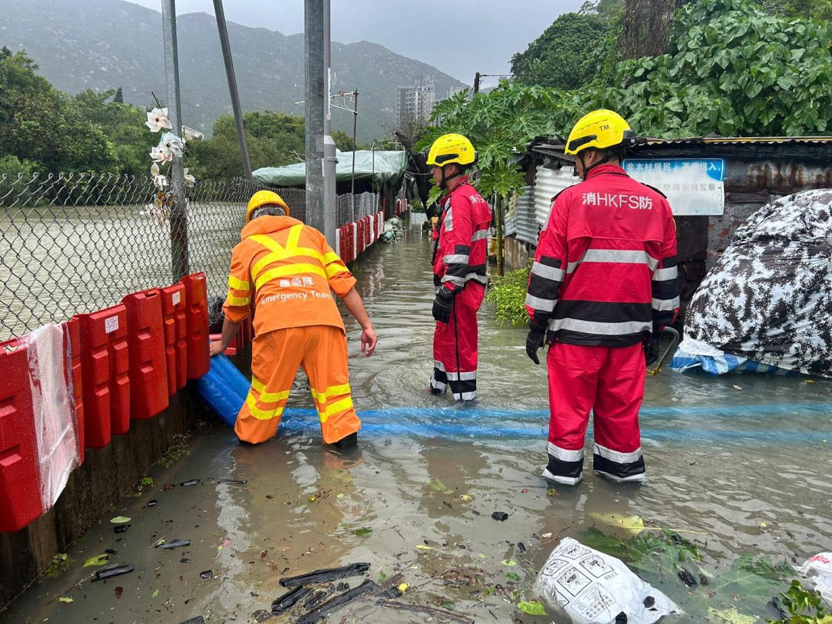渠務署指出,截至今日下午3時,已確認16宗水浸個案,目前已完成處理其中6宗水浸個案,分別位於杏花邨、沙頭角新樓街、林村河畔近廣福橋、香港富麗敦海洋公園酒店、鯉魚門海傍道近海鮮街及屯門嘉和里。現正全力處理其餘10宗個案,分別位於城門河畔近大涌橋路及源禾路、將軍澳海濱長廊近唐俊街、大埔王肇枝中學對出行人隧道、黃大仙翠竹街近鵬程苑、屯門龍鼓灘路、大澳、荃錦公路近木棉下村、元朗東頭圍、沙田曾大屋及大埔年華路。