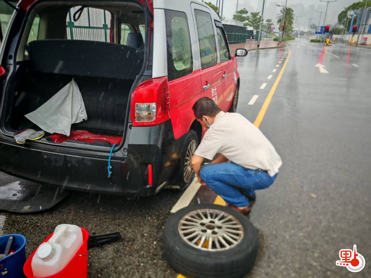 點新聞記者今早分赴杏花邨、鯉魚門及將軍澳等「重災區」直擊受災情況。沿途上也有不少「小插曲」:記者所乘的士突然爆胎,司機沉着應對,迅速從後備箱取出工具維修,不久便重新上路。記者趁機與這位在10號風球下仍堅持開工的司機交談,了解風雨中「搵食」的艱辛。