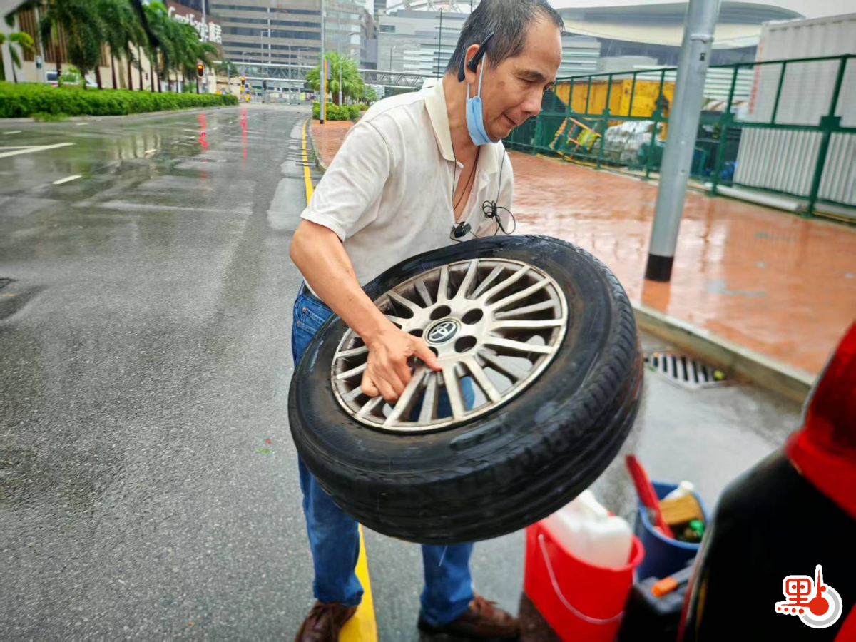 談及爆胎意外,司機表示颱風天會增加爆胎機率,「因為行車路面有大量殘枝,只要輪胎壓過垂直於地面的樹枝,就很容易爆胎」,他指自己車上長期準備維修工具,以備不時之需。