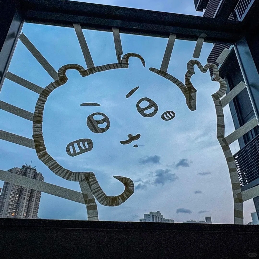 還有人乾脆把膠布貼成Chiikawa、太陽花,窗戶瞬間變身手工藝品。網友調侃:「這不是防颱,這是搞動漫展!」