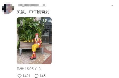 但麥當勞叔叔淡定坐着,彷彿風雨無阻繼續請大家「食薯條」。