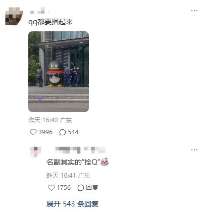 更絕的是,連QQ企鵝雕塑都要捆起來!網友看到後直呼:「這下真拴Q了」