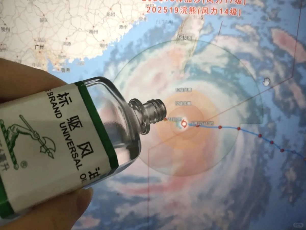 更絕的是,有網友直接拿出「驅風油」對着颱風路徑圖比劃,還一本正經地說:「萬能驅風油,颱風你給我退!」