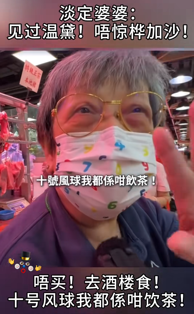 最經典的還是淡定婆婆的一句話:「十號風球我都係咁飲茶!」