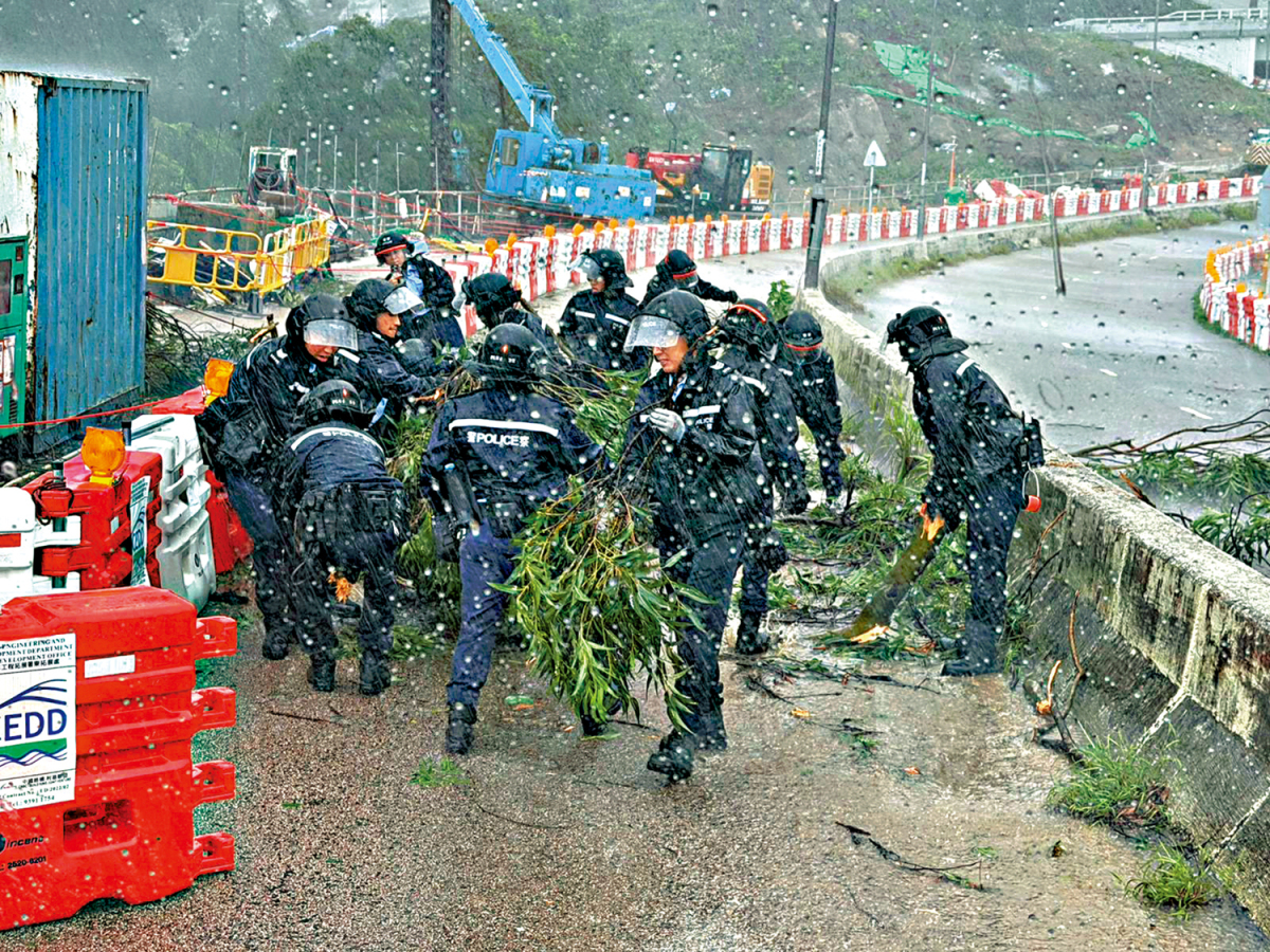 •消防處已協調路政署、運輸署等部門,盡快清理阻塞主要路段的塌樹,並會繼續通宵進行有關工作。