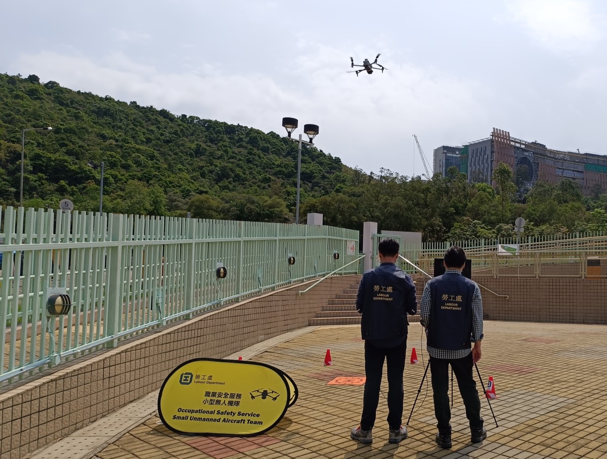 勞工處處長許澤森及副處長(職業安全及健康)馮浩賢早前視察小型無人機演練,了解職安主任操作無人機的情況及應用成效。許澤森表示,職安主任日後可利用小型無人機從高空遙距監察工地,當發現不安全作業時,能即時攝錄蒐證,然後再派員進入工地執法。許澤森繼指,小型無人機亦方便巡查偏遠或難到達的工作地點,大大提升巡查效率。勞工處採用的無人機配備高倍率變焦高清攝錄鏡頭,從空中進行遙距拍攝及錄影,協助職安主任進行巡查及意外調查時蒐集證據。