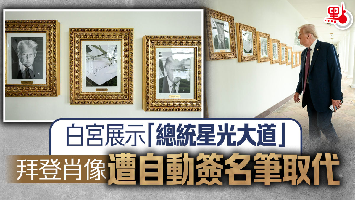 【點新聞報道】昨日(24日),白宮在其社交平台發布照片,展示了白宮西翼柱廊牆上的「總統星光大道」(Presidential Walk of Fame),牆上掛的是45位曾擔任美國總統的肖像照,然而卻不見拜登的肖像,取而代之的是一張自動簽名筆的照片。