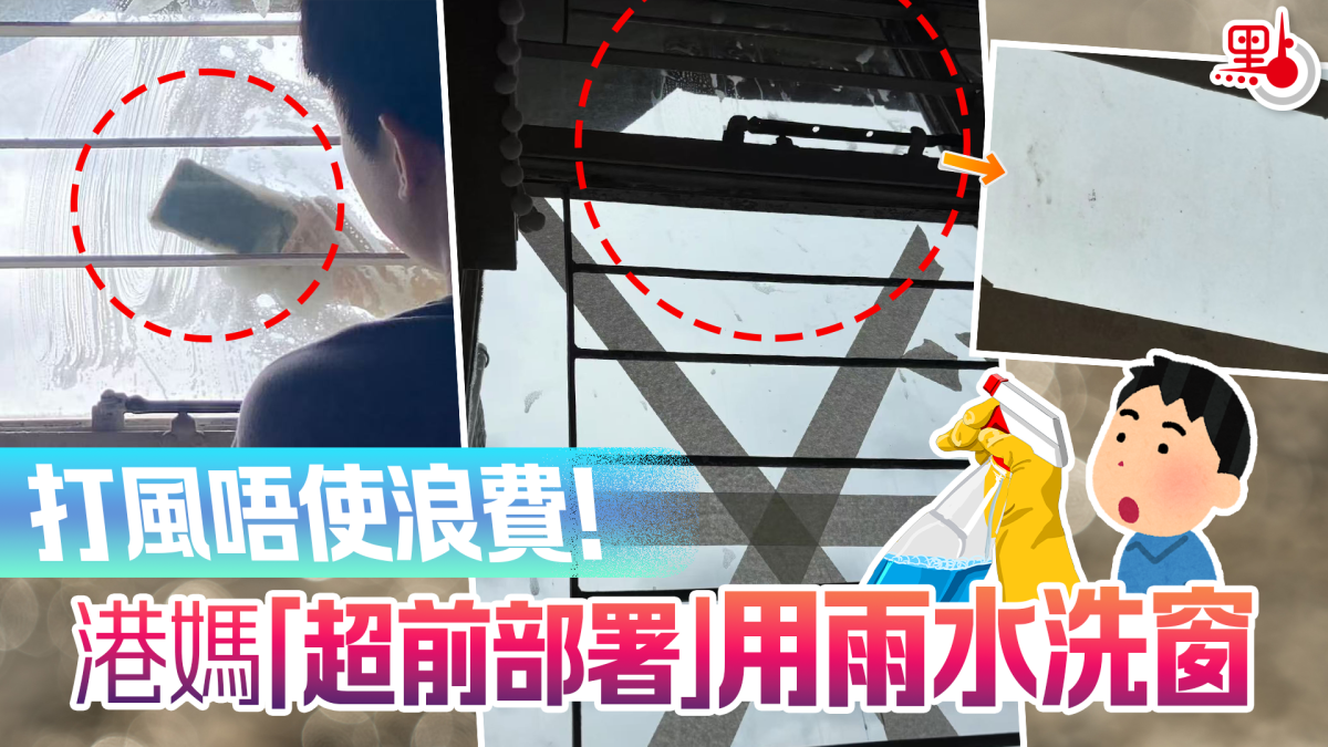樓主在社交平台分享這則趣事,相中的港媽在颱風樺加沙襲港前,除了用膠紙貼窗,還手持沾上清潔劑的百潔布伸手到窗外抺窗,指「整定啲泡,樺加沙幫手洗窗」。
