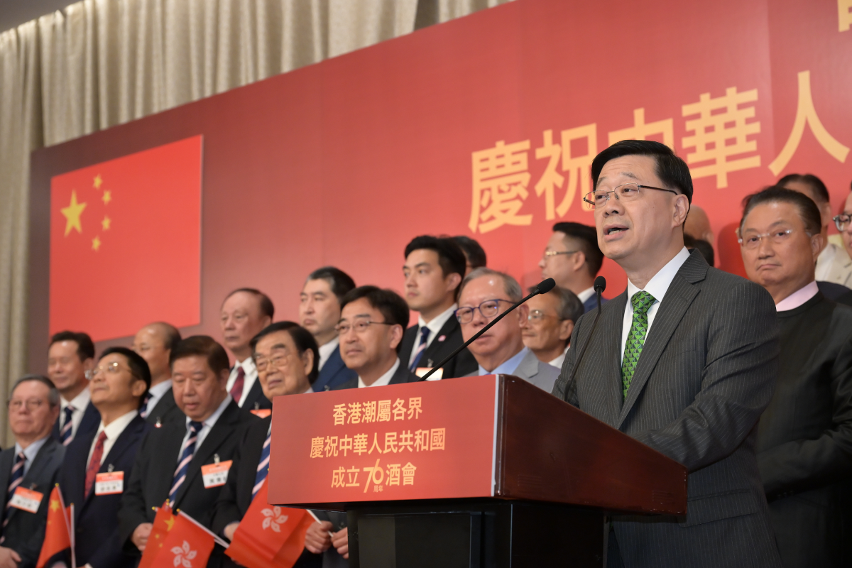 【點新聞報道】香港潮屬各界慶祝中華人民共和國成立76周年酒會今日(25日)舉行。行政長官李家超出席致辭時表示,潮籍社群遍布全球,尤其在東南亞地區根基深厚,擁有穩固的商業網絡,可以在「出海」過程中發揮積極作用。他鼓勵大家積極用好「引進來、走出去」策略,將深厚人脈與商業智慧,轉化為香港與內地企業攜手進軍海外市場的具體優勢。潮籍鄉親勤奮拚搏、自強不息,必然可以發揮更大力量,為香港的發展和繁榮,貢獻更大的拳頭力量。