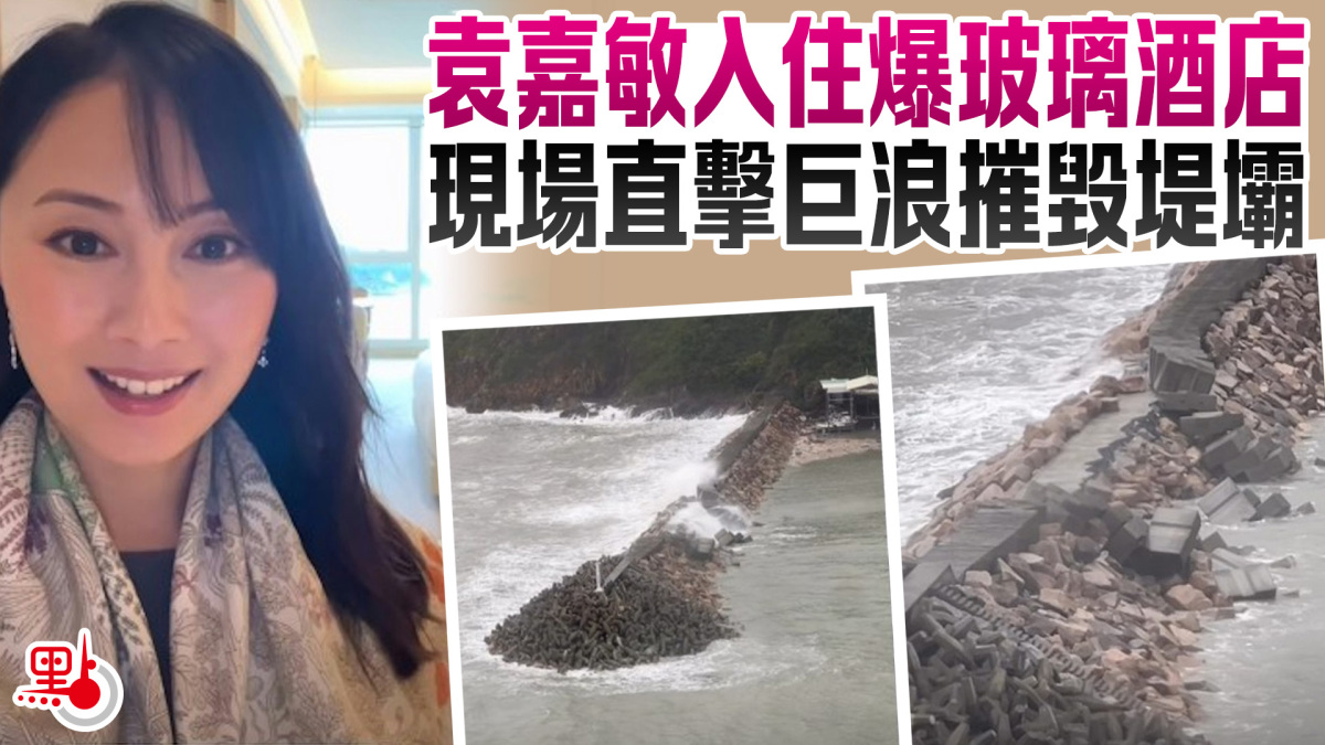 袁嘉敏於IG story分享多條酒店內外片段,她從酒店房間望出窗外大海的影片,表示:「嘩,啲浪好巨型,好似末日災難片咁,個堤壩係摧毀咗,好犀利呀」。從片中可見堤壩遭巨浪重擊,出現了缺口。