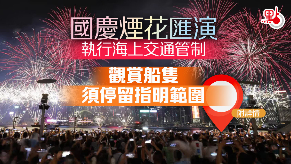 觀賞煙花的船隻可在限制區和禁區外的指明範圍內停留,有關範圍在當晚6時至約9時(指明期間)實施。為提升大型海上活動舉行期間的海上安全,觀賞船的船長須在相關指明範圍及指明期間內,確保船上兒童有成人陪同和全程穿上救生衣,並須備存乘客和船員名單作應急用途。海事處會加強檢查船隻,如發現違規情況,會作出檢控。