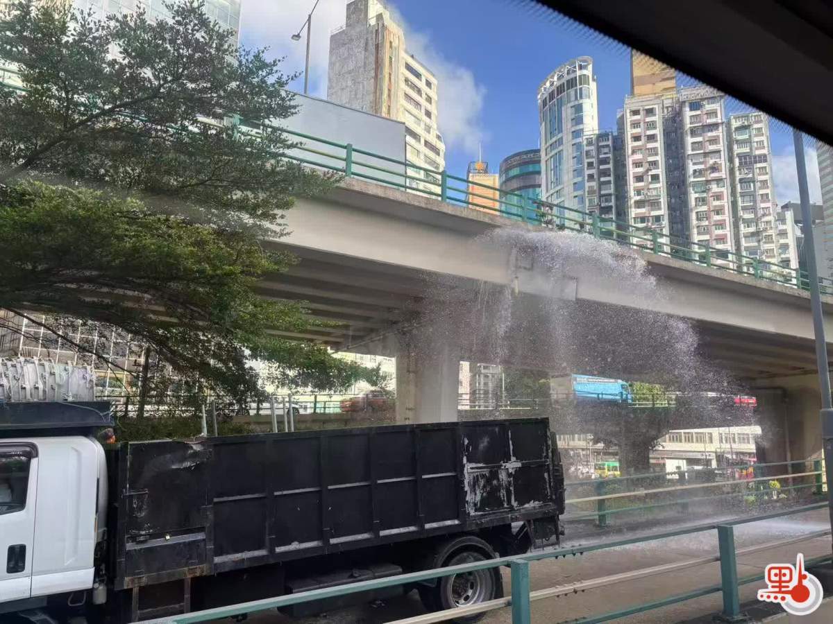 銅鑼灣鵝頸橋爆水管 車輛涉水而行