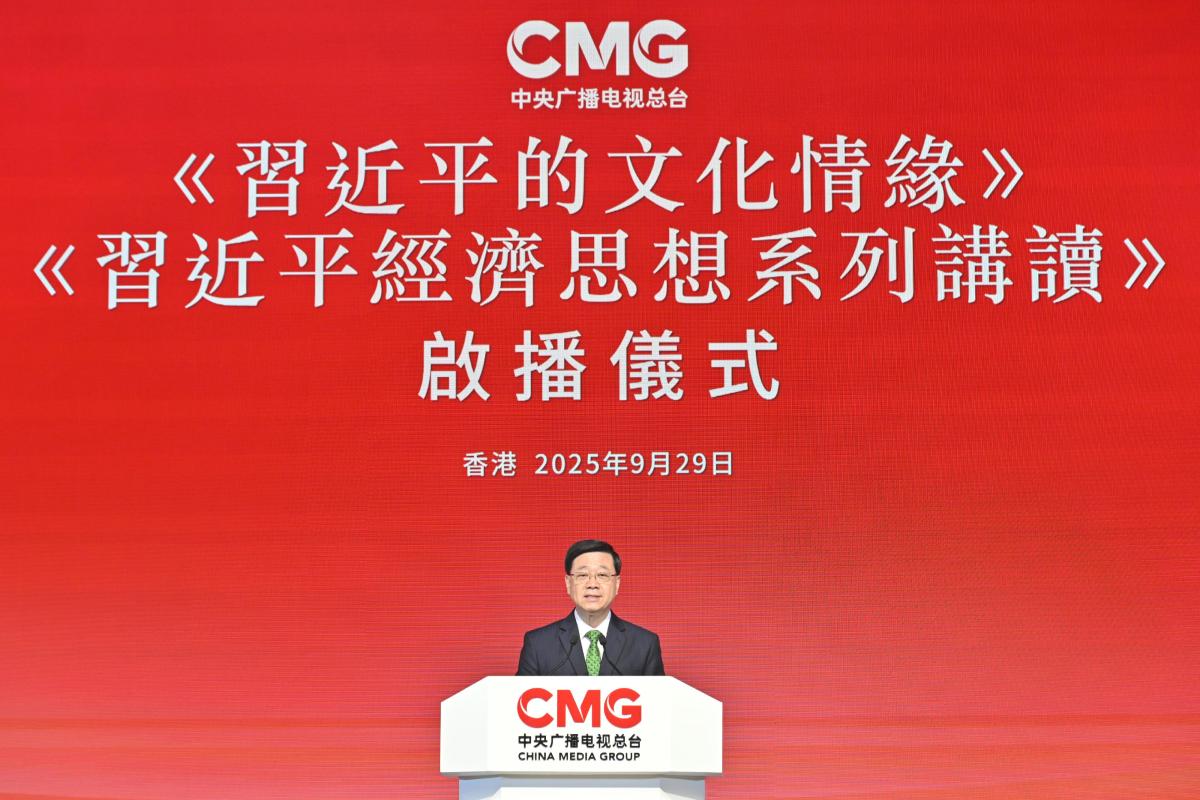 《習近平的文化情緣》、《習近平經濟思想系列講讀》香港啟播儀式及「紫荊綻放煥新篇——中央廣播電視總台與香港各界深化合作儀式」今日舉行。行政長官李家超出席並致辭指,《習近平的文化情緣》透過實地探訪河北正定、福建廈門、浙江杭州、甘肅敦煌等習近平主席工作或考察過的地方,立體呈現習主席治國理政理念的深厚文化根基,同時讓香港市民加深認識中華民族源遠流長、兼收並蓄的文化底蘊,了解國家在文明探源、文化遺產保護等方面的努力。《習近平經濟思想系列講讀》節目,闡釋習主席的經濟思想內涵,以及關於推動高質量發展、新質生產力等重要論述,帶領觀眾了解國家經濟發展的戰略思維、牢記全面推進強國建設、實現民族復興的偉大使命。