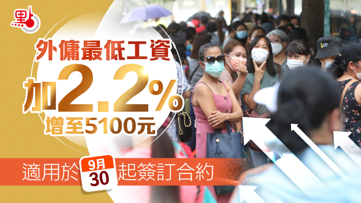 【點新聞報道】特區政府今日(29日)宣布,本港外籍家庭傭工(外傭)的「規定最低工資」將上調2.2%,由現時每月4990元增加至5100元。新的「規定最低工資」水平將適用於明日(30日)起簽訂的所有外傭合約。