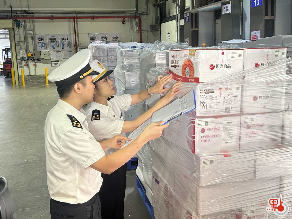 「海關在供港澳食品原料種植、養殖場備案和食品生產加工企業備案,申報前檢驗檢疫監管和衞生證書出具,以及口岸查檢等方面進行了調整優化,在保障相關食材安全的前提下,為供港澳賽區運動員食品高效通關提供最大便利。」廣州海關進出口食品安全處副處長趙婧介紹,為保障首批供應港澳賽區運動員食品順利通關,廣州海關提前溝通企業需求、「一對一」指導企業進行出口申報,同時加強了屬地巡倉,嚴密儲存、裝卸等環節監管。