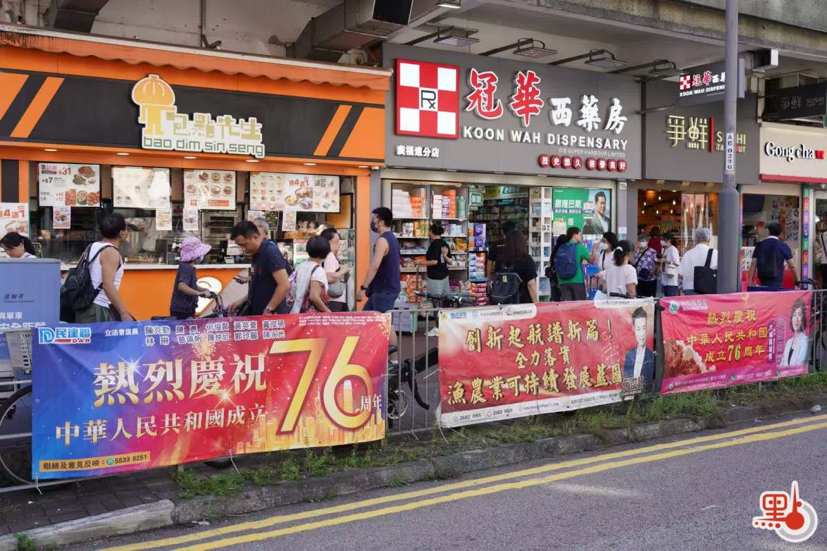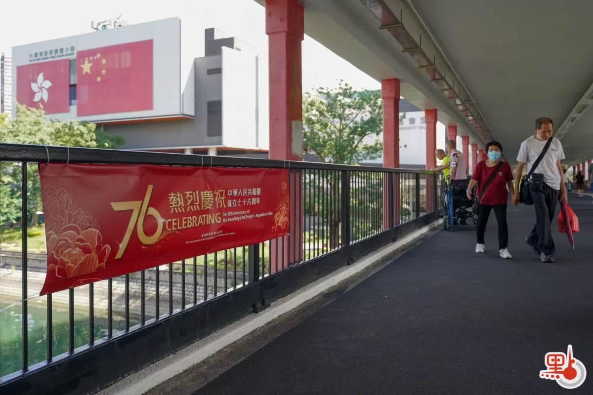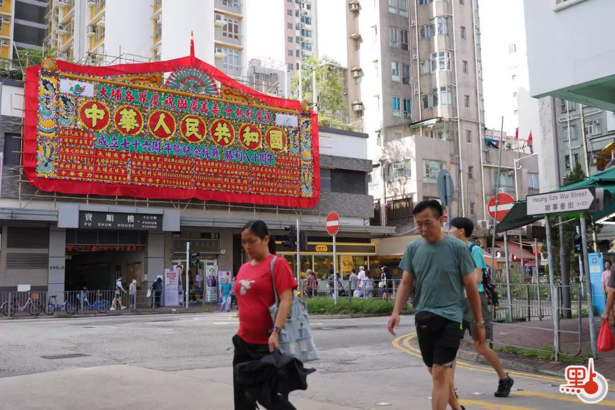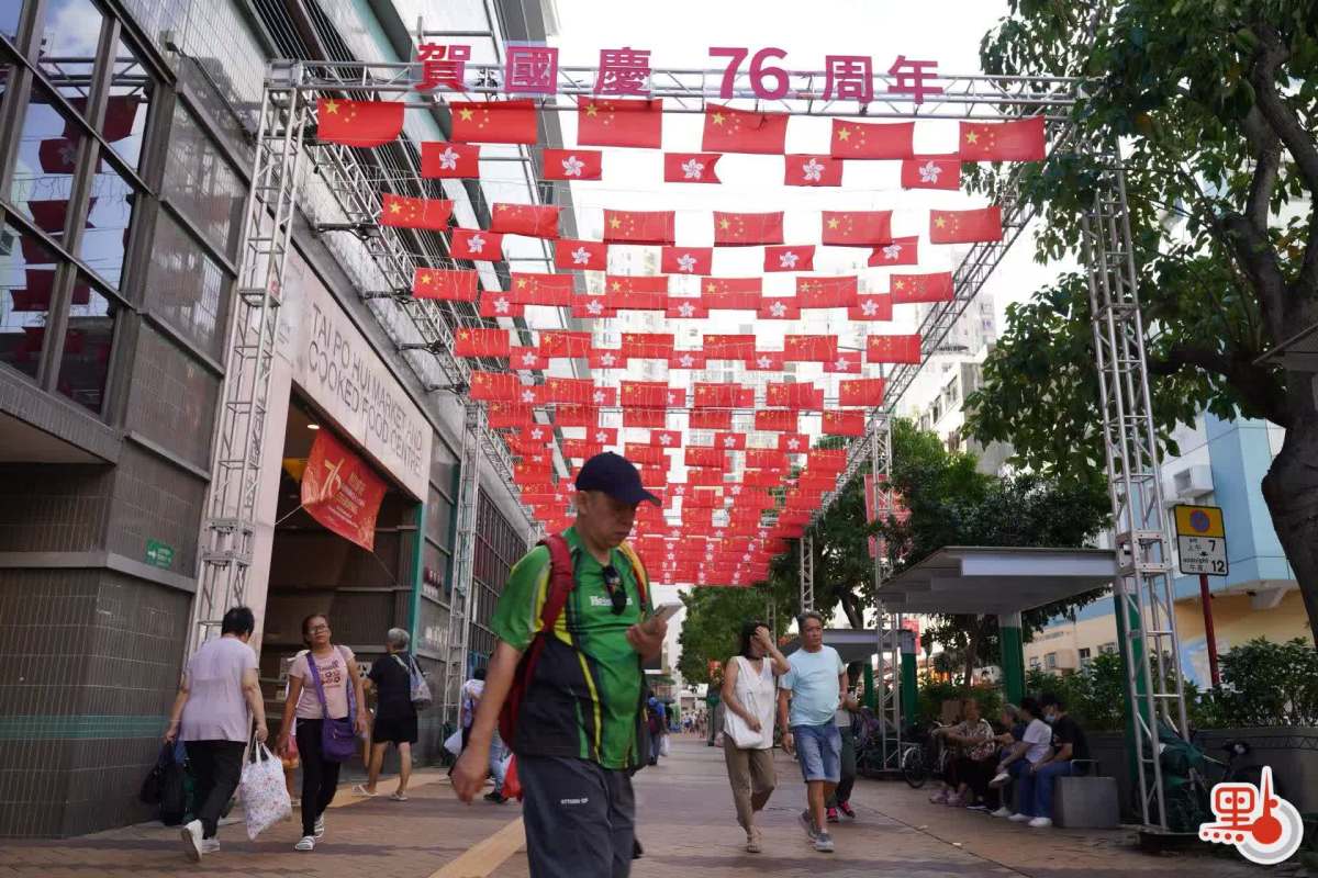 【點新聞報道】十一國慶將至,本港街頭已洋溢起濃厚的喜慶氣氛。為慶祝中華人民共和國成立76周年,本港街道兩旁布置起各類裝飾——只見香港區旗與中國國旗交相輝映,迎風招展,搭配慶祝中華人民共和國成立76周年的醒目橫幅,處處彰顯節日的莊嚴與熱烈。