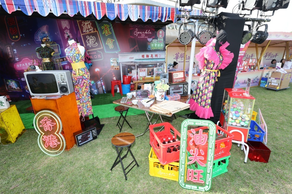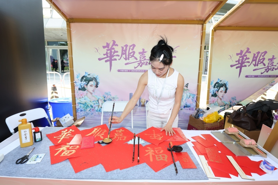 現場還設置「華服遊園會」,包含多個特色體驗區域:霓虹街拍擂台將傳統華服與時尚元素創新結合,提供摺扇、宮燈等道具供遊客拍照留念。華裳製衣坊讓遊客體驗手絹、香囊等傳統手工藝製作。非遺體驗區展示蘇繡、福聯、漆扇等非物質文化遺產。國風市集匯集多家文創機構,展示具有傳統文化特色的文創產品。
