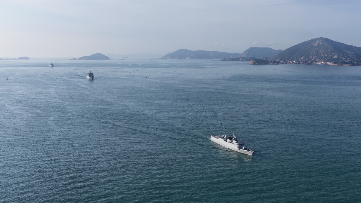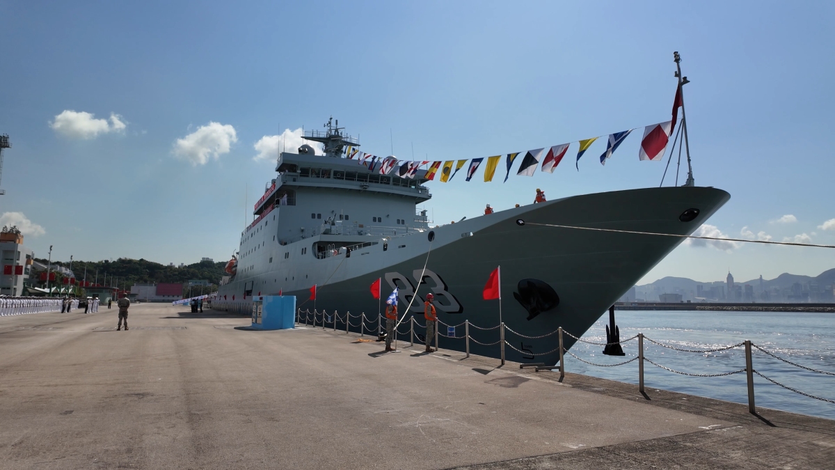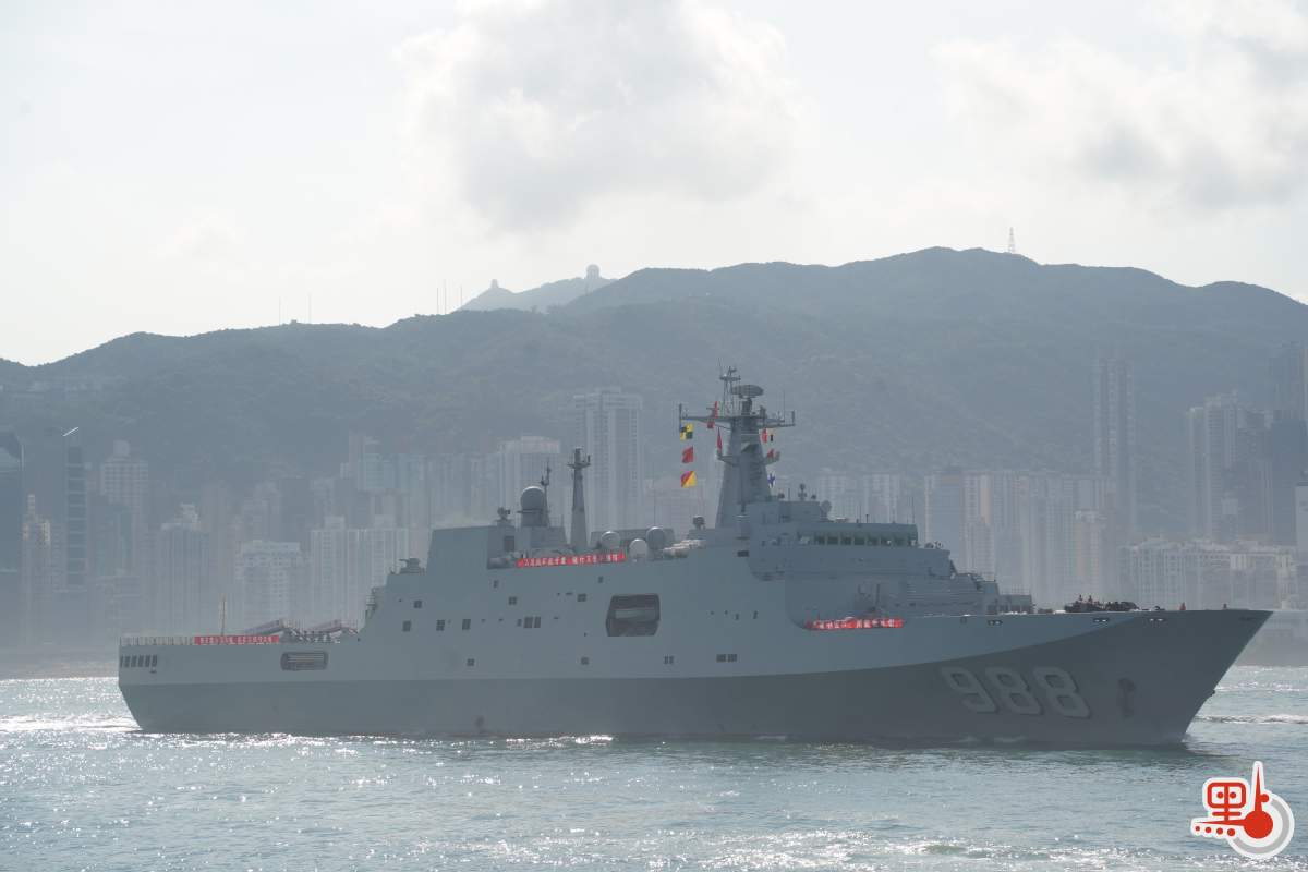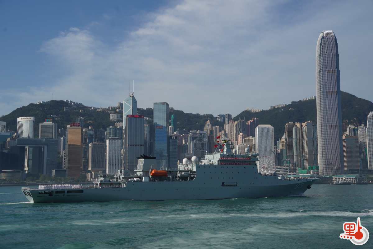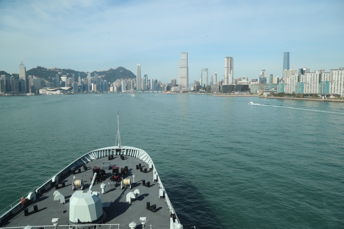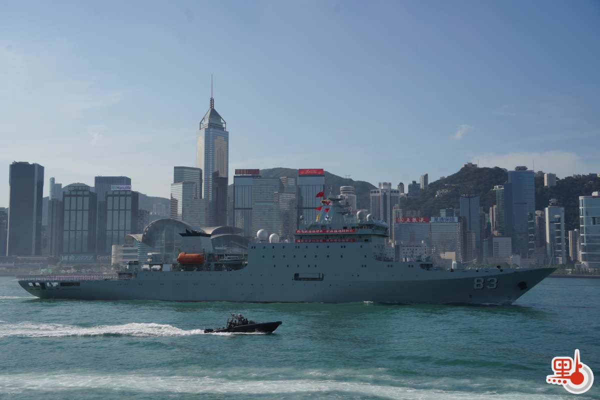 【點新聞報道】30日上午,中國海軍戚繼光艦、沂蒙山艦抵達香港水域,隨即由宿遷艦和香港特區政府船隻引航,駛向中國人民解放軍駐香港部隊昂船洲軍營。兩艦將在昂船洲軍營舉行艦艇開放活動,接受市民登艦參觀。