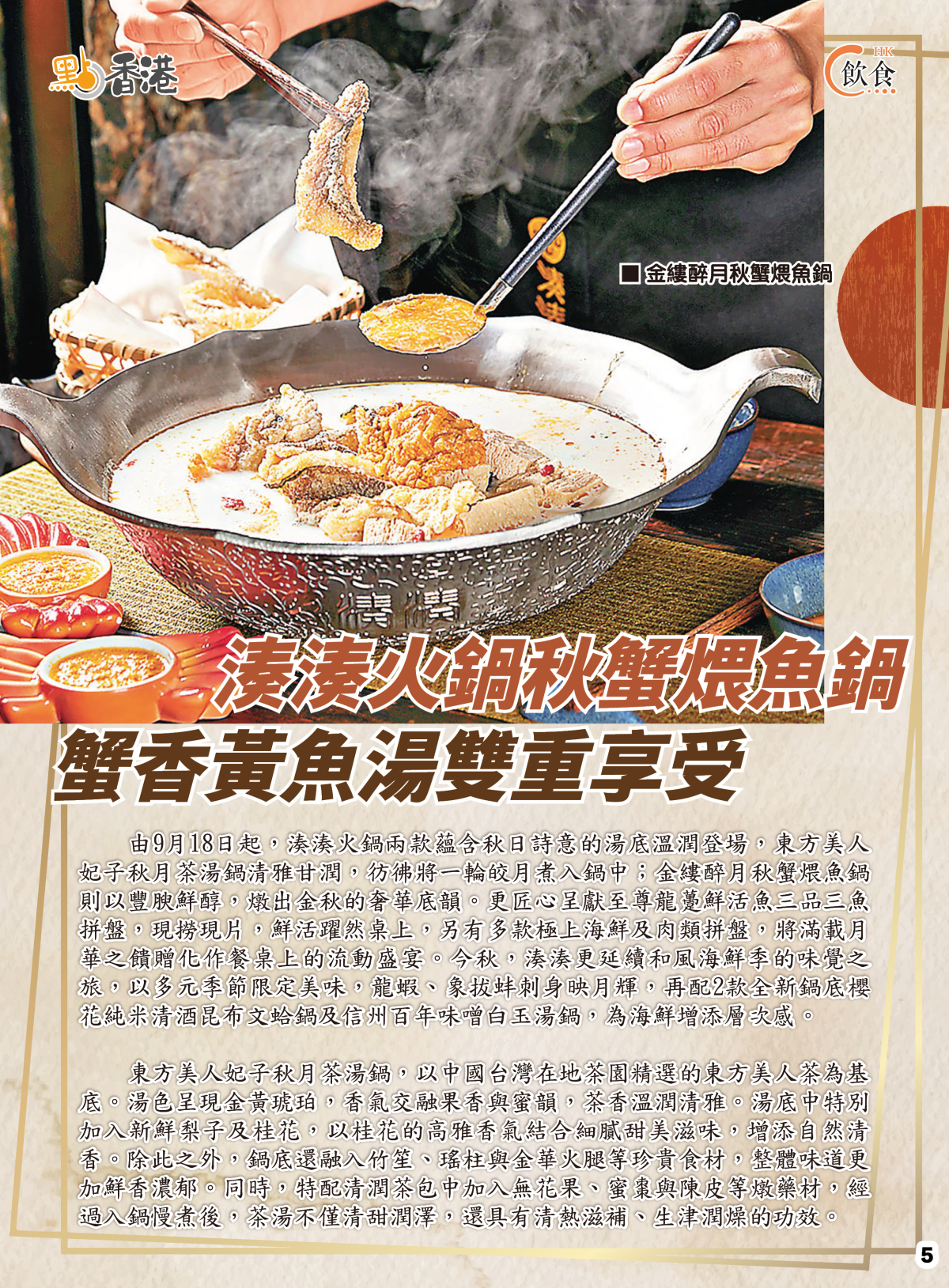 金秋盛宴,蟹香四溢。个園竹語」匠心呈獻六両大閘蟹八味金秋宴,拆蟹服務貼心加持,蟹膏蟹粉入饌層次豐富;湊湊火鍋則以東方美人茶湯鍋與秋蟹煨魚鍋演繹詩意秋味,桂花梨香、蟹膏黃魚交織出金秋的溫潤與奢華,為味蕾添上季節的詩篇。