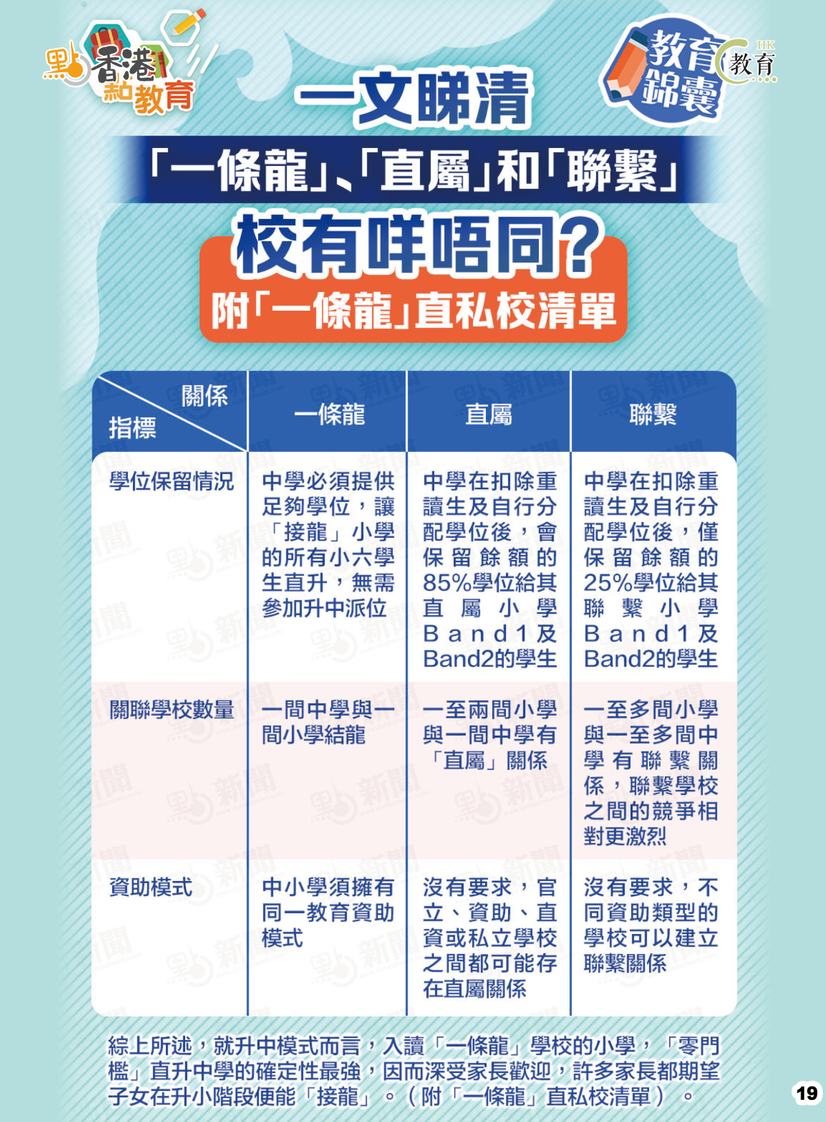 「一條龍」學校小中合作緊密,小六學生直接升中,無需參加派位。許多家長為降低子女升學的不確定性,對「龍校」和「直屬校」青睞有加。那「一條龍」、「直屬」和「聯繫」校有什麽不同呢?