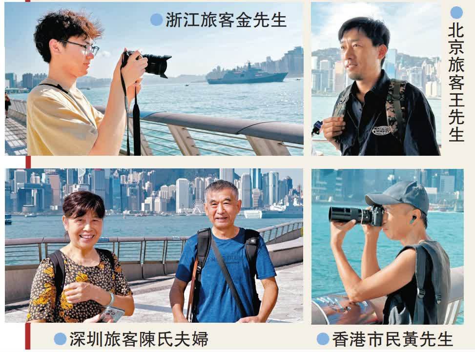趁國慶黃金周假期從深圳來港旅遊的陳氏夫婦,意料之外地見證了艦艇駛入維港,興奮之情亦溢於言表。「我們本來只是來香港逛逛,沒想到能看到祖國軍艦,非常驚喜。國慶即將到來,我們深刻感受到香港與內地的緊密聯繫。」他們還請記者幫忙合照,記錄這珍貴一刻。