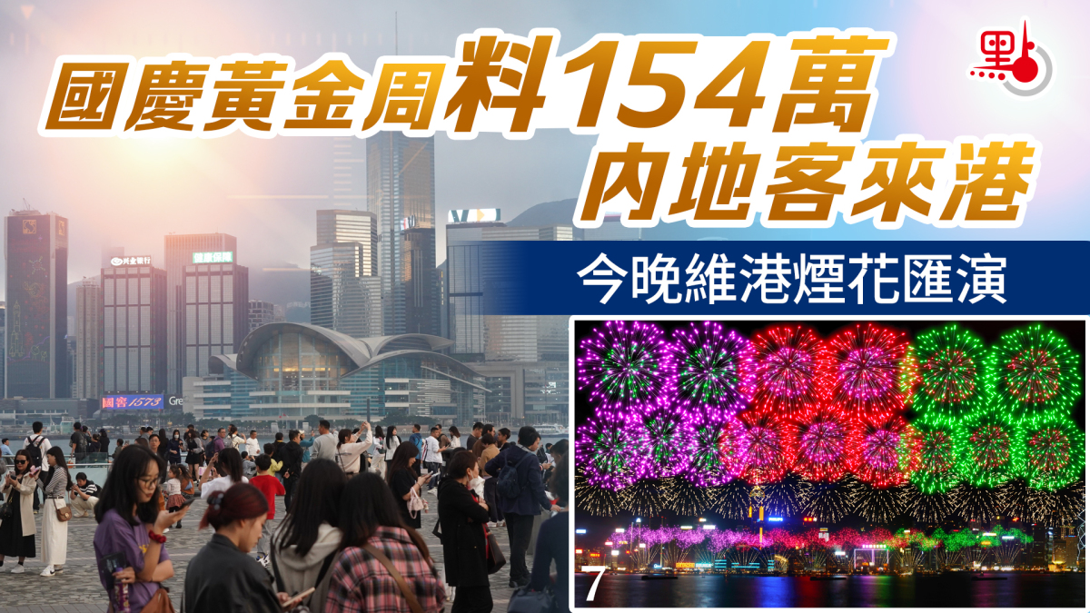 今晚在維港上空舉行的國慶煙花匯演,是一系列慶祝活動的重頭戲。酒店業界人士表示,維港兩岸酒店可欣賞煙花的房間已經預約爆滿,黃金周期間「價量齊升」,整體房價與訂房數目按年升5%至10%。餐飲業人士表示,今晚有煙花酒席1.2萬元一圍仍爆滿,黃金周餐廳訂座反應超預期,按年升10%。