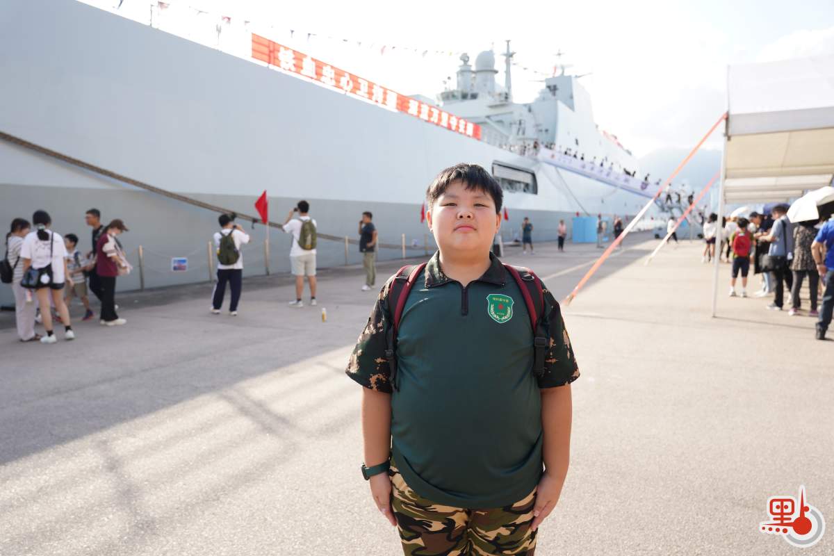 現場排隊參觀的還有多位小朋友,他們都想要盡快登上艦艇。來自重慶、在香港讀書的張同學回憶,上次山東艦來港時自己未能搶到門票,這次他特意提醒父親搶票,終於成功,並表示對開放日中各種各樣有趣的活動充滿期待。而饒同學則與母親一同參觀軍艦,他表示能入場「非常之幸運」,因可親眼見證「祖國有多少新型武器」。他還特別提到艦上搭載的水陸兩棲裝備,該裝備既能在海上航行,又能登陸陸地,他想親眼近距離觀察。