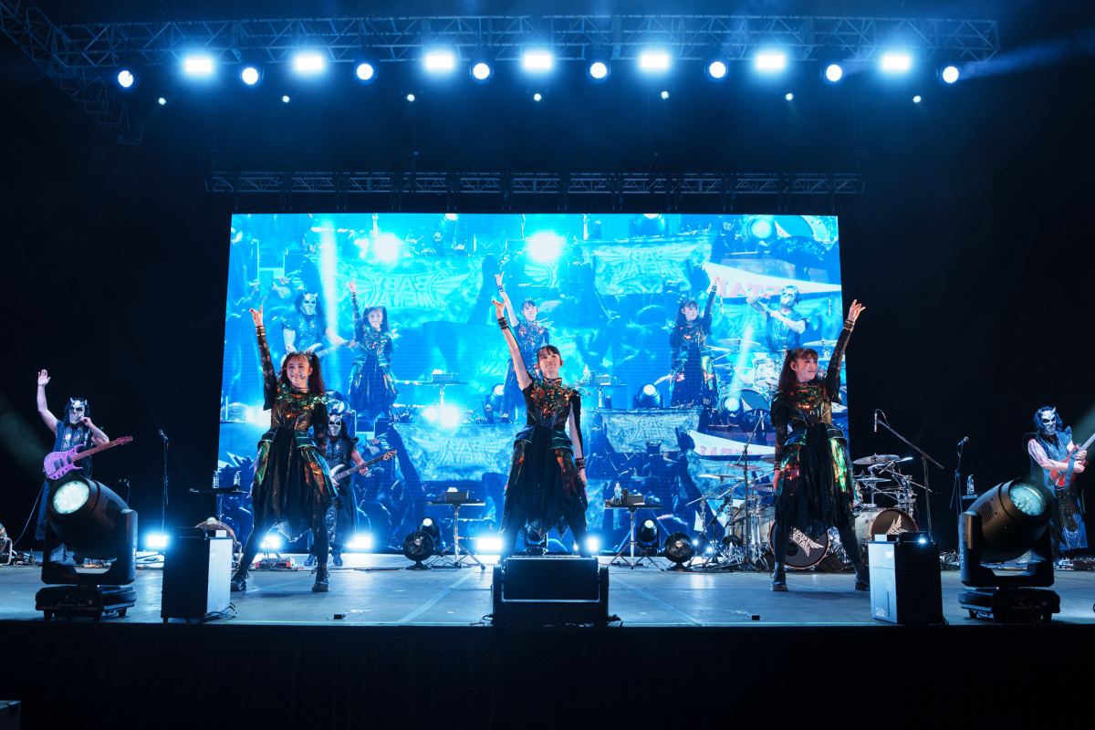 BABYMETAL由主唱中元鈴香(SU-METAL)領軍,加上岡崎百百子(MOMOMETAL)及菊地最愛(MOAMETAL)組成少女偶像×重金屬組合。三位成員穿上招牌黑色造型現身,以歌曲《BABYMETAL DEATH》揭開序幕,全場粉絲即時歡呼,並跟着節奏搖擺。她們接着唱出《Head banger!!》並用英文高呼「Hello HK」及「Are you having fun?」三名成員邊唱邊狂跳舞等震撼全場。當人氣歌曲《PA PA YA》音樂響起,粉絲即時歡呼,還跟着成員揮舞毛巾,場面壯觀。