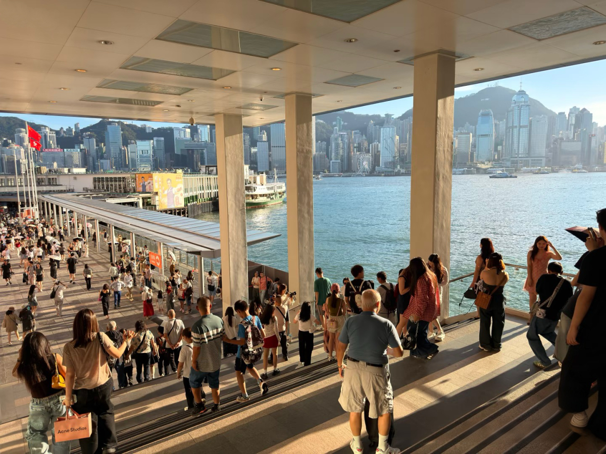 維港今夜上演盛大的國慶煙花匯演,吸引了大量內地遊客專程前來「打卡」。記者現場觀察到,儘管下午陽光炙烤,仍有不少人提前來到尖沙咀海旁佔位等候。尖沙咀和銅鑼灣等熱門觀賞點人潮湧動,鄰近的商場如海港城和時代廣場等地,午後人流顯著增加,餐飲和零售店舖普遍出現排隊現象。儘管這場視覺盛宴備受期待,業界人士對其對酒店和餐飲等過夜消費的實際拉動效應仍持謹慎態度,還需進一步觀察。