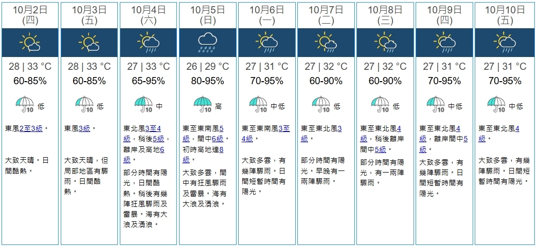 隨着高空反氣旋再度增強,預計中秋節(10月6日)及翌日(10月7日)廣東沿岸的驟雨將逐漸減少,天色逐步好轉。市民仍有很大機會於中秋節或「追月」晚上,在雲隙之間觀賞到明月。市民可參考香港天文台的「九天天氣預報」及「天文觀測天氣資訊」網頁,獲取最新的天氣情況及天文觀測條件。