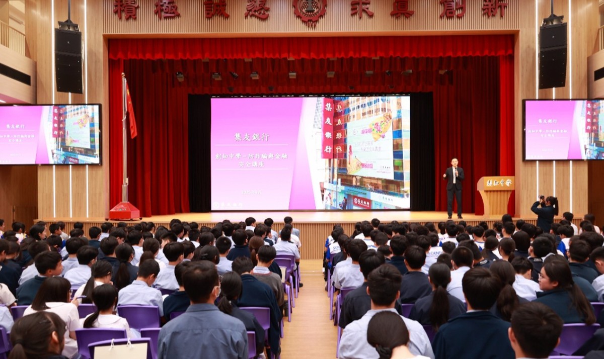 【點新聞報道】日前,集友銀行在香港創知中學舉辦了「中企金融服務進社區專題講座」,為約1000名學生及老師帶來了一場防詐騙與金融安全講座。此次活動旨在提高師生們的金融風險防範意識,幫助識別常見的詐騙手段,同時介紹該行在金融安全保障方面的創新舉措及專業貼身服務。