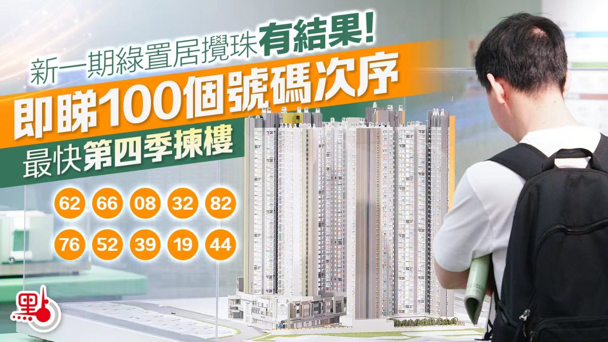 【點新聞報道】綠置居2024攪珠儀式今日(10月2日)早上進行,以決定申請者按其申請編號最後兩個數字而訂的先後次序,儀式由房委會資助房屋小組委員會主席黃碧如主持,攪出的頭10個號碼為62、66、08、32、82、76、52、39、19、44。符合資格的申請人預計最快可於今年第4季開始揀樓。