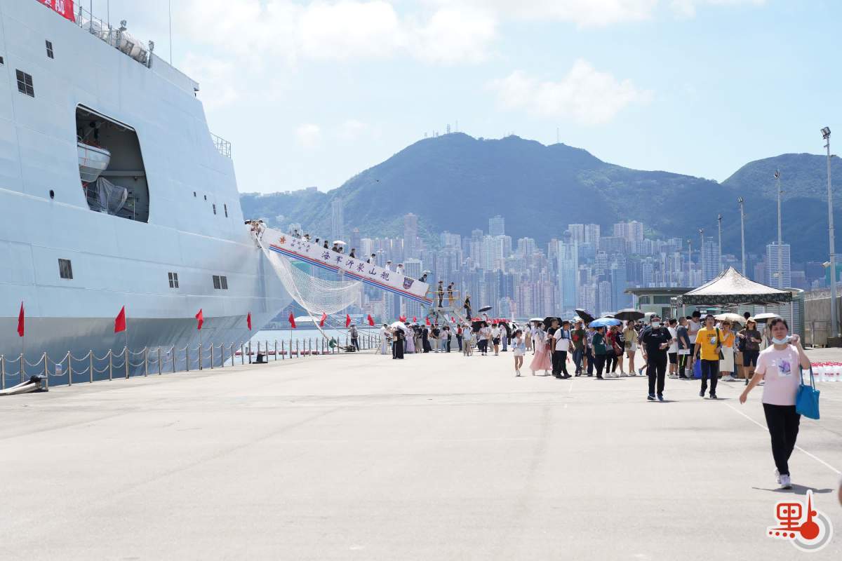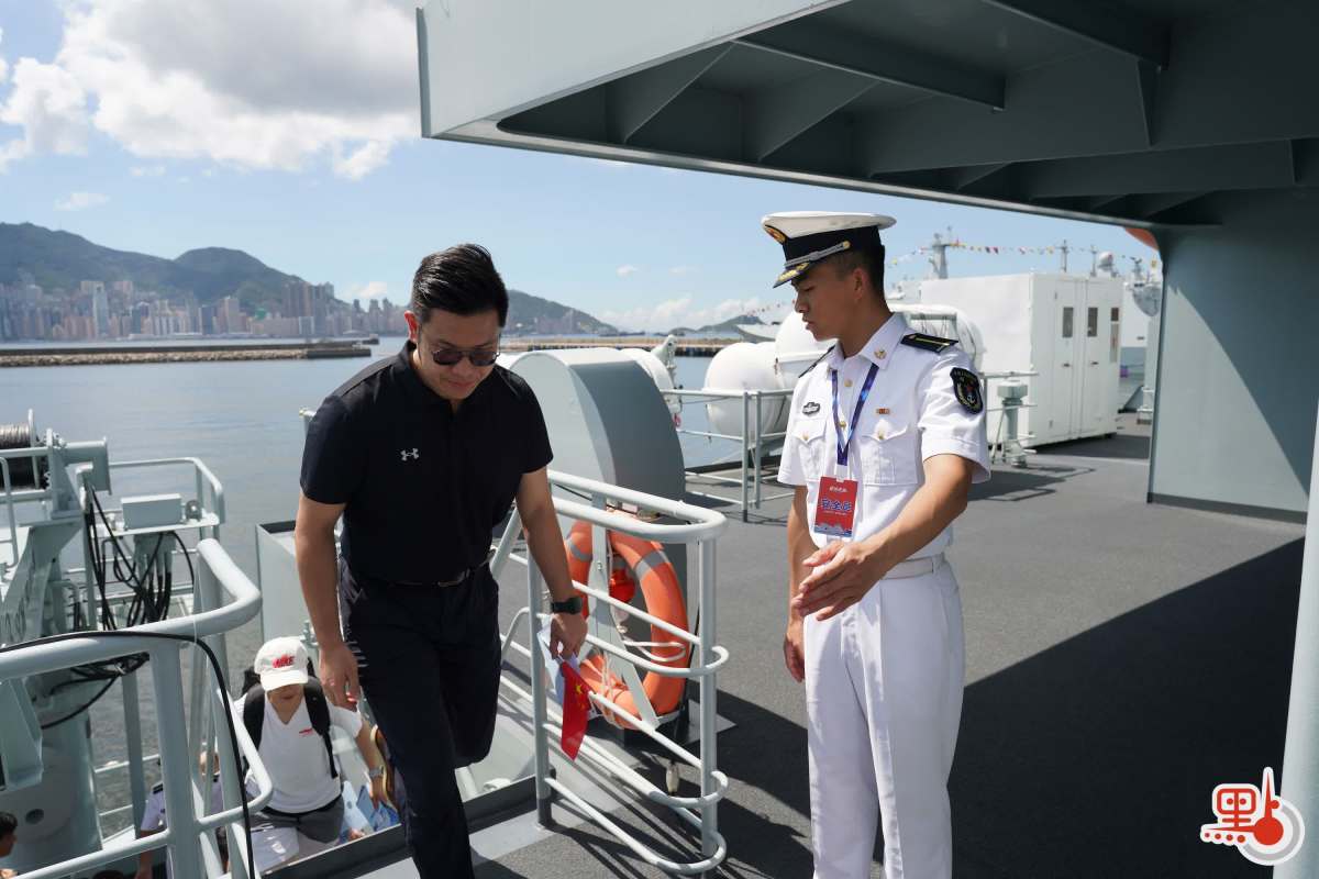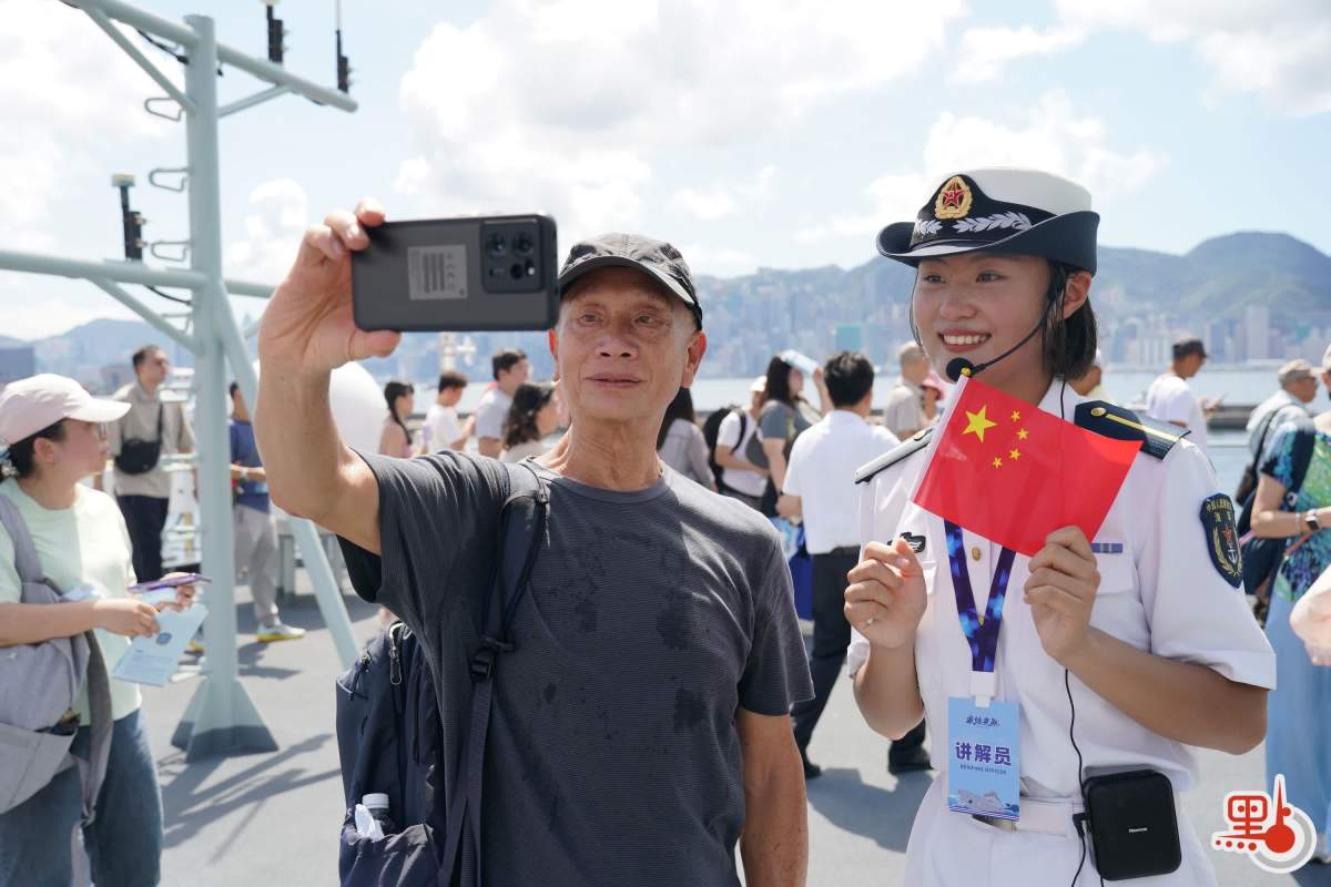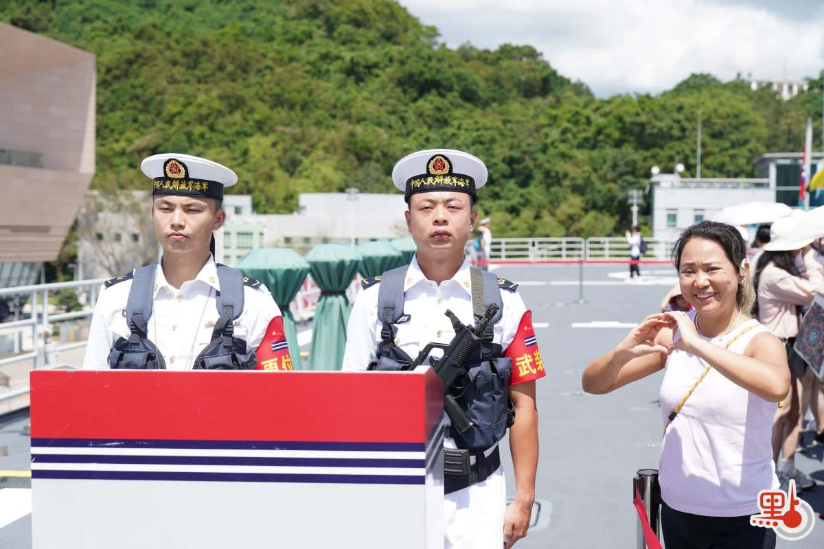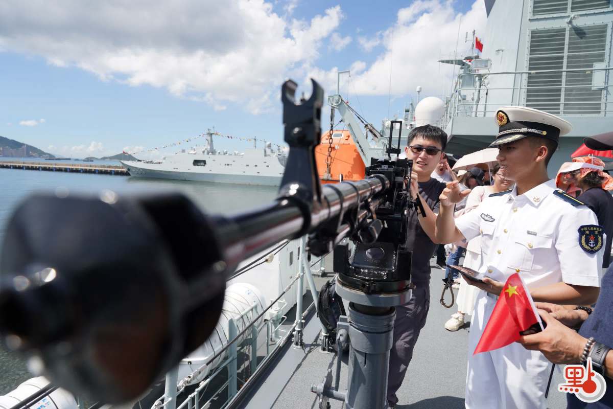 【點新聞報道】由海軍戚繼光艦、沂蒙山艦組成的83艦編隊今日(10月2日)繼續在昂船洲軍營舉辦艦艇開放活動。雖然天氣炎熱,市民的熱情卻絲毫未減,紛紛登艦參觀,一睹「國之重器」的雄偉風采,感受海軍力量的磅礴氣勢。現場氣氛熱烈,市民們與艦上官兵互動,合影留念,爭相打卡記錄這難忘時刻。許多人還親身體驗了槍械操作,近距離感受軍事裝備的精妙與力量。