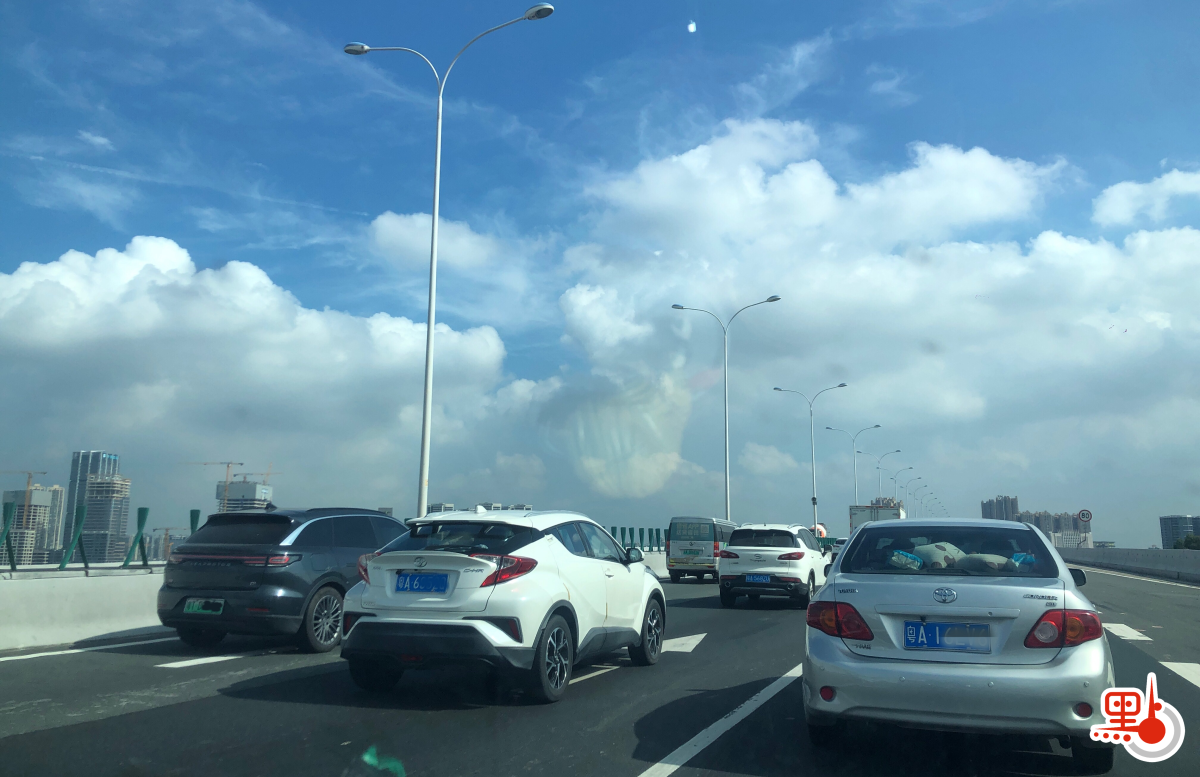 據點新聞記者實測,今日上午11時半左右駕車從廣州天河區前往增城區,途經的華南快速幹線由於右側車道發生交通事故而堵車近5公里;之後經過的濟廣高速也有多路段因車流量激增而緩慢行駛,平時花15分鐘通行的路段要耗時半小時以上。