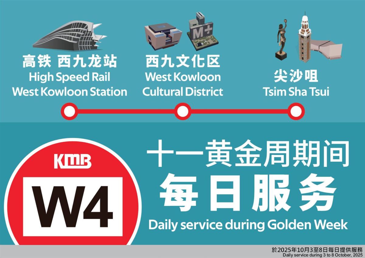 【點新聞報道】內地國慶黃金周首日,經高鐵西九龍站入境的內地旅客近5.8萬人次,為眾邊境管制站之冠,其中不少旅客抵港後直接展開旅程,前往西九文化區和尖沙咀觀光,或先到尖沙咀和尖東一帶的酒店區辦理入住手續。為應對國慶黃金周期間急增的乘客需求,九巴今日(2日)公布,加強路線W4服務,由10月3日至8日每日往返高鐵西九龍站及尖沙咀,便利乘客去到不同熱門景點。