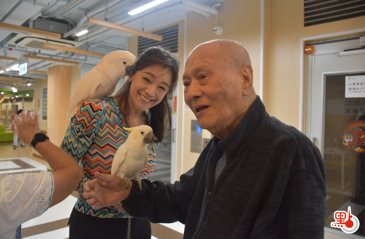 郭秀雲還特別帶來兩隻鸚鵡BonBon和Winnie擔任「特別嘉賓」,牠們乖巧親人,長者們都排隊輪流撫摸,與鸚鵡親切互動,現場氣氛溫馨。