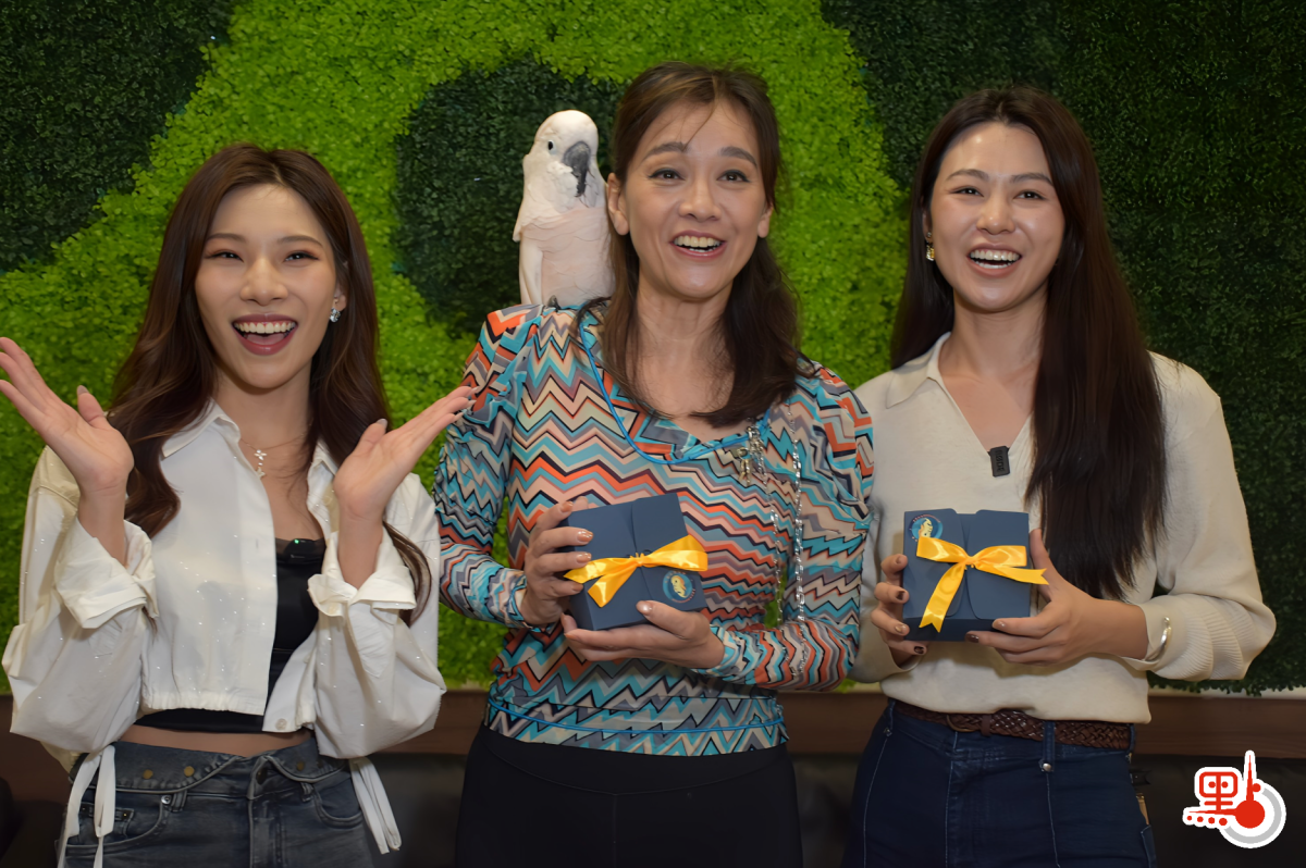 【點新聞報道】日前,藝人郭秀雲(Sharon)聯同由她提名參選港姐的前港姐梁采貽(原名梁家琪)及同屆港姐陳銘鳳(Cherry),一同前往護理安老院探訪長者。活動中,她們與長者互動玩遊戲、派發月餅,並分享環保教育知識。郭秀雲更特意帶同兩隻乖巧貼心的鸚鵡與長者相聚,可愛的鸚鵡逗得長者們十分開心。當日適逢梁采貽的26歲生日,上屆港姐冠軍倪樂琳更驚喜現身,帶蛋糕為好友送上祝福,令采貽感動不已,度過了一個既難忘又充滿意義的生日。