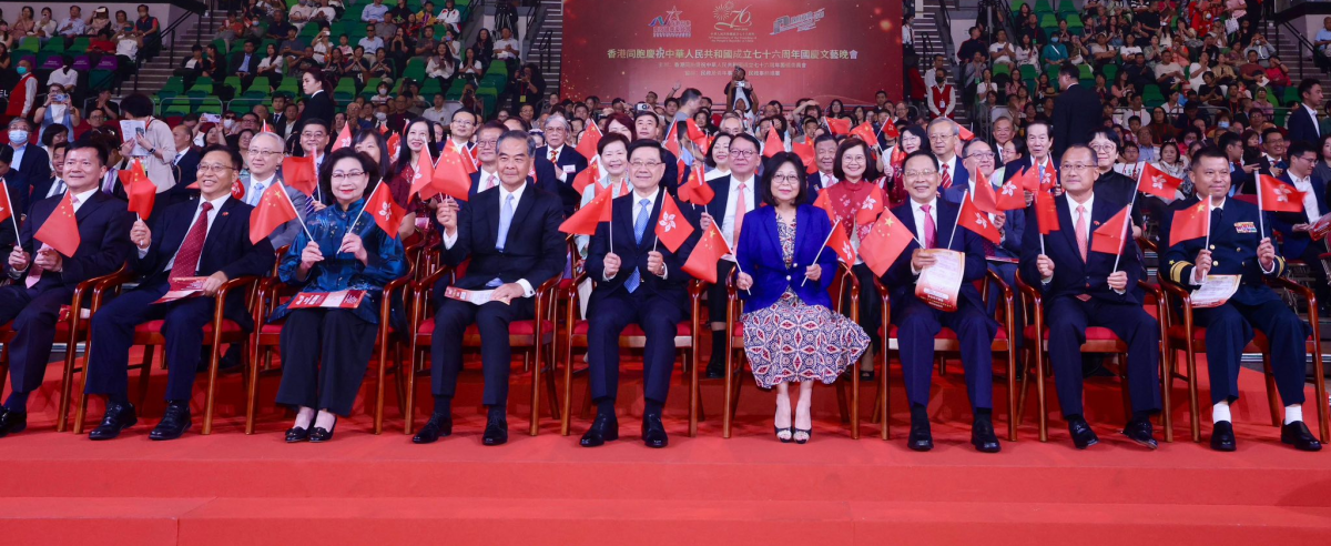 【點新聞報道】香港同胞慶祝中華人民共和國成立七十六周年國慶文藝晚會,今晚(10月2日)8時於紅磡香港體育館舉行。今年晚會以「紫荊花開 香滿神州」為主題,推出眾多精彩節目。行政長官李家超、全國政協副主席梁振英,以及多名司局長蒞臨現場。