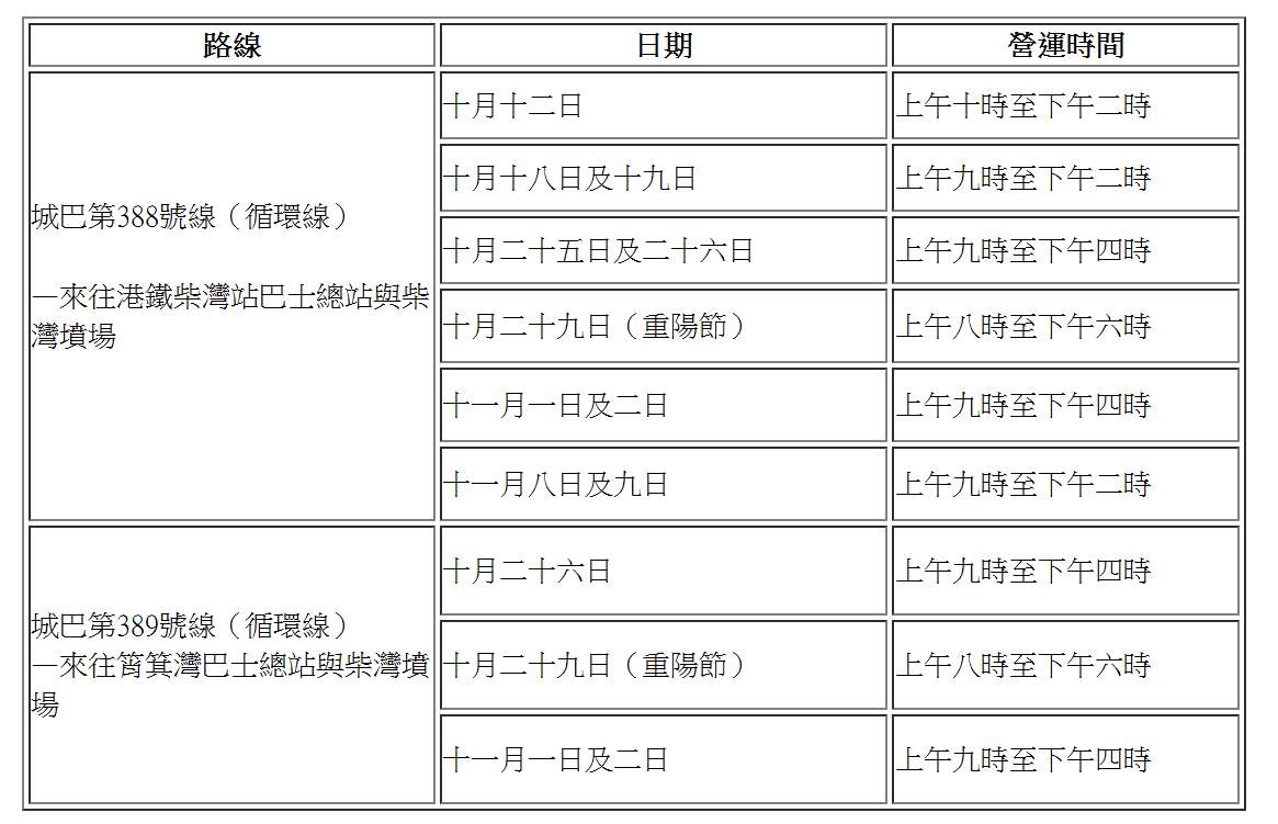 以下特別巴士路線將於指定日子提供服務,並會視乎乘客需求及交通情況加強服務。