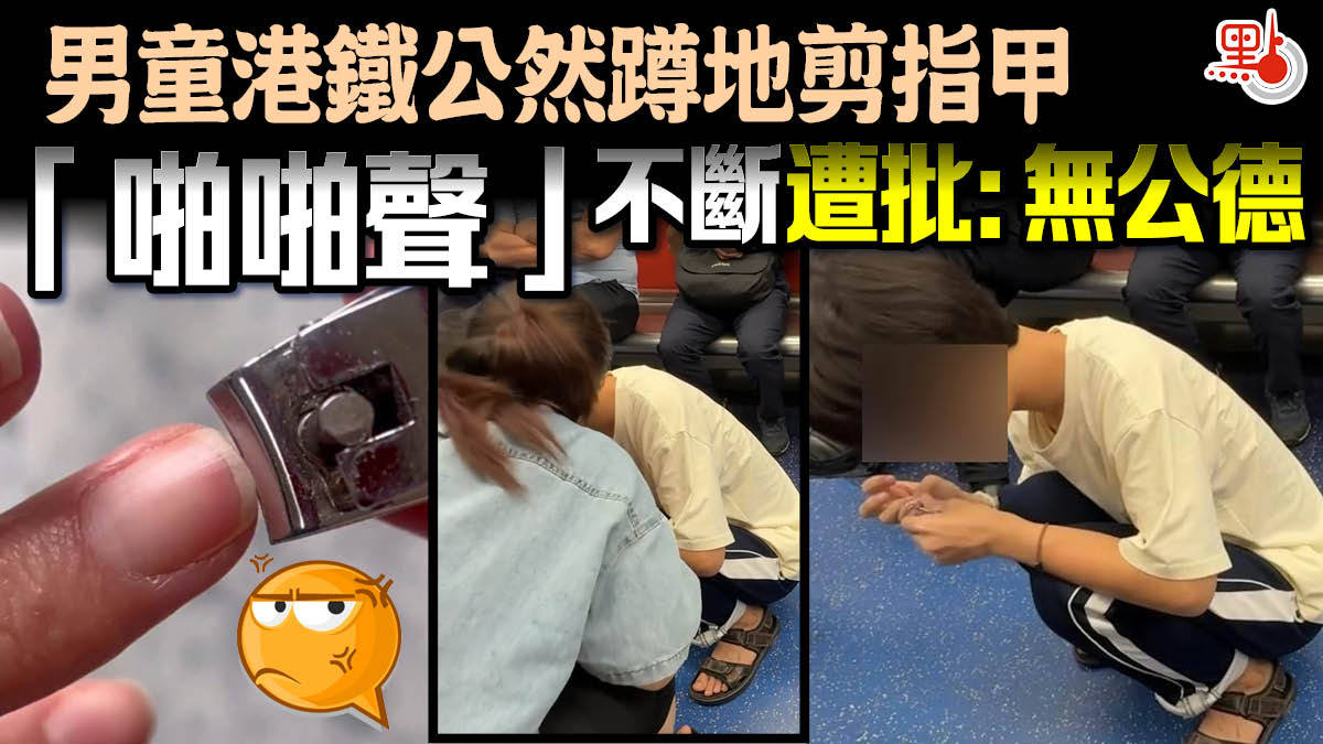 【點新聞報道】近日社媒流傳一段影片,顯示港鐵車廂內一名男童蹲在地上,十分投入地剪指甲,車內則無人理會。該行為引起網民指責「無公德」、「點會諗到要咁做?」